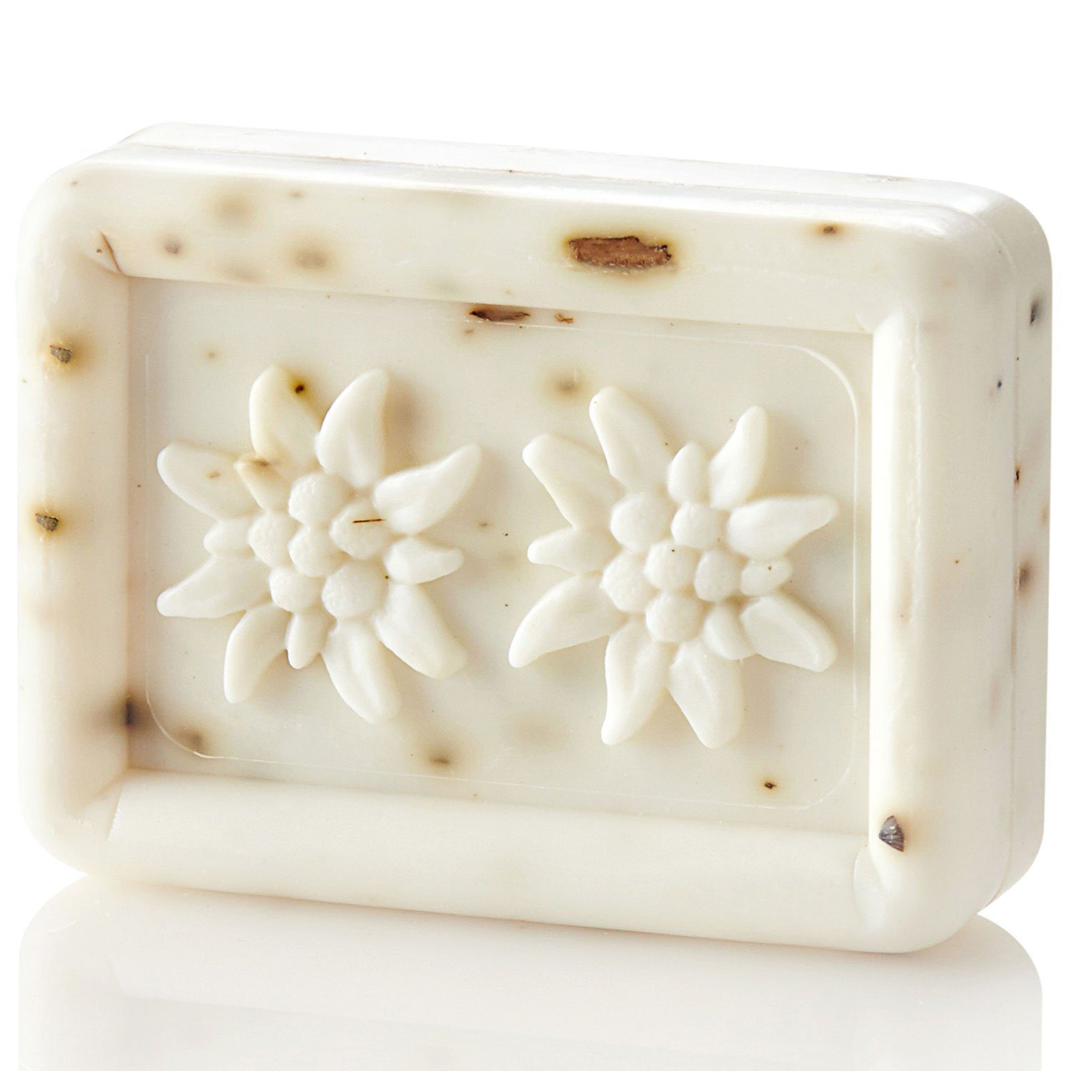 Schafmilchseife "Edelweiß" Natürliche Pflege für Ihr Wohlbefinden Diese Schafmilchseife mit Edelweißduft schützt Ihre Haut, ist rückfettend und sehr hautverträglich. Hergestellt mit Schafmilch, Mandelöl, Shea Butter und pflanzlichen Ölen. Gesamtlänge: 9 cm Gesamtbreite: 6 cm Gesamthöhe: 2,5 cm Gewicht: 100 g Besonderheit: mit Aufdruck "Schafmilchseife" Inhaltsstoffe: Sodium Palmate, Sodium Palm Kernelate, Aqua, Sheep Milk (Schafmilch), Glycerin, Palm Kernel Acid, Olea Europaea Oil (Olivenöl/Olive Oil), Parfum, Sodium Chloride (Salz/Salt), Palm Acid, Olea Europaea Leaf Extract (Olivenblätter/Olive Leafs), Tetrasodium EDTA, Tetrasodium Etidronate, Hexyl Cinnamal, Hydroxyisohexyl 3-Cyclohexene Carboxaldehyde, Benzyl Salicylate, Benzyl Benzoate, Linalool, Limonene, Geraniol, CI 77891