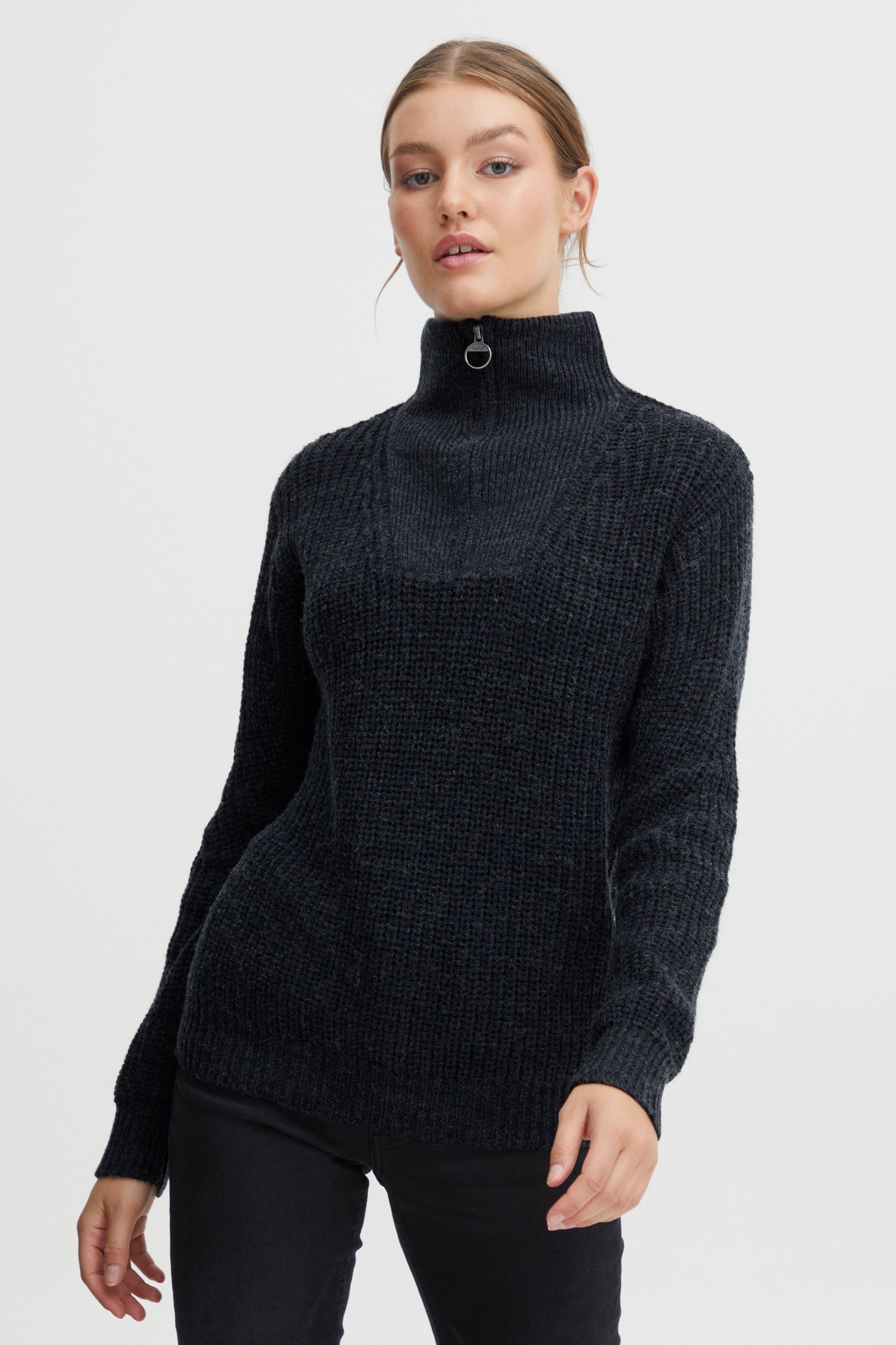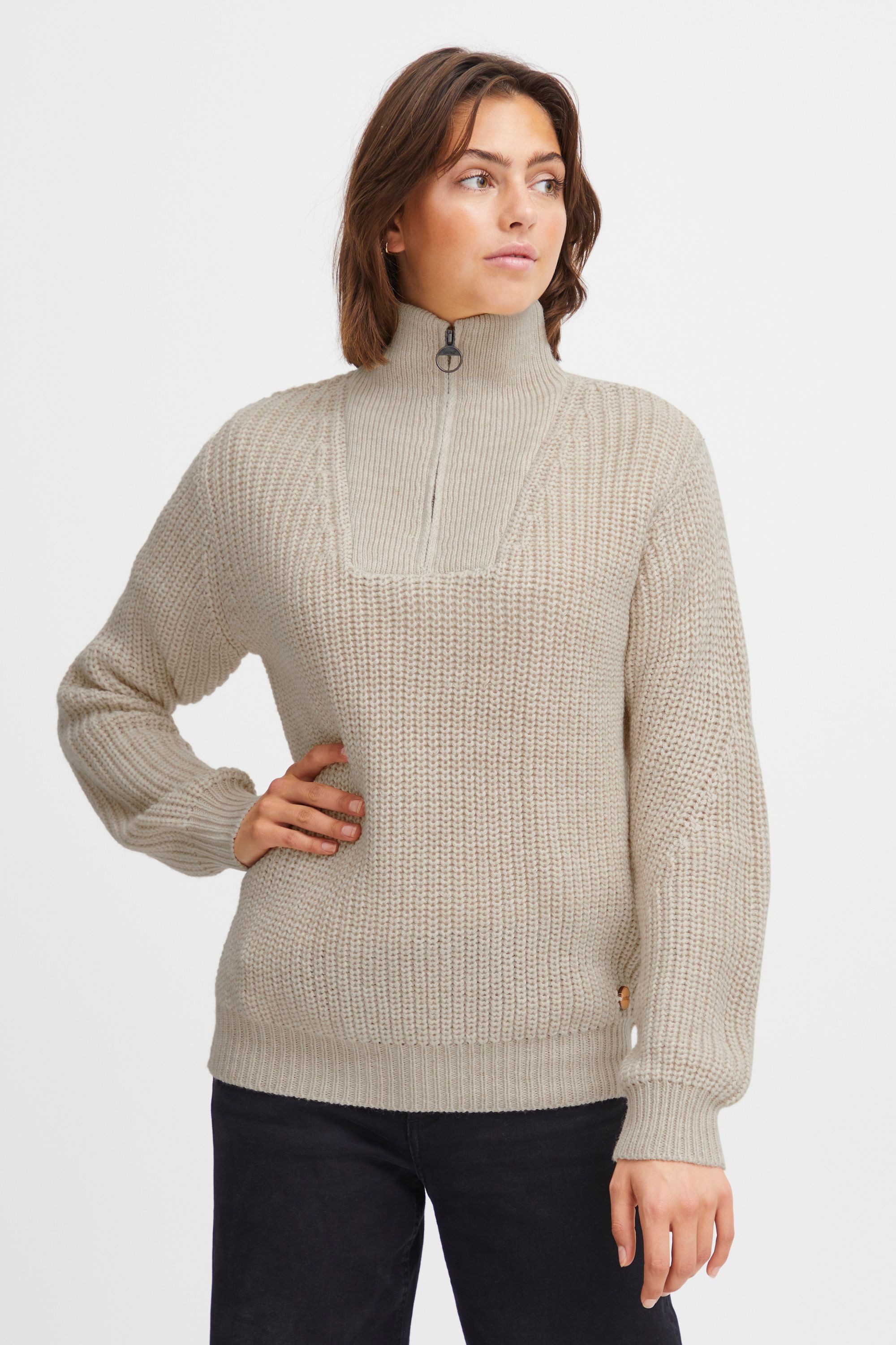 Dieser Grobstrickpullover für Damen mit klassischem Troyer-Kragen verbindet sportliche Details mit einem stilvollen Look. Die hochwertige Qualität und Verarbeitung sorgen für angenehmen Tragekomfort und eine strukturierte Passform – ideal für den Alltag oder besondere Anlässe. Ob kombiniert mit einer Jeans für einen lässigen Look oder mit einer Stoffhose für ein gepflegtes Outfit – dieser Pullover lässt sich vielseitig tragen und stilvoll kombinieren. Ein ausdrucksstarkes Basic mit funktionalem Kragen und zeitlosem Charakter.