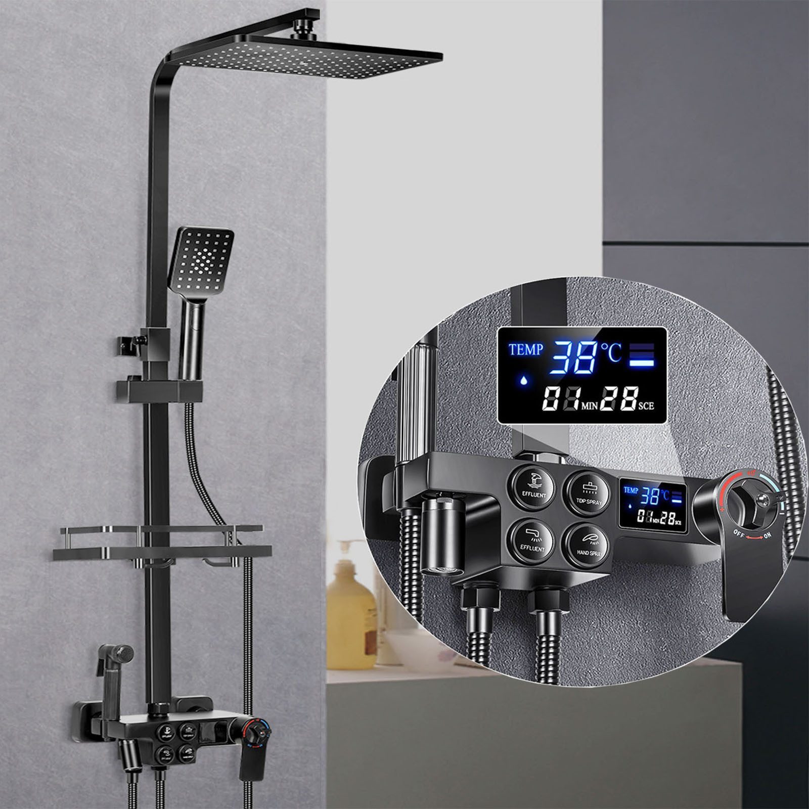 Eigenschaften | Höhenverstellbarer LCD Thermostatische Duschsäule 6 Strahlenart |