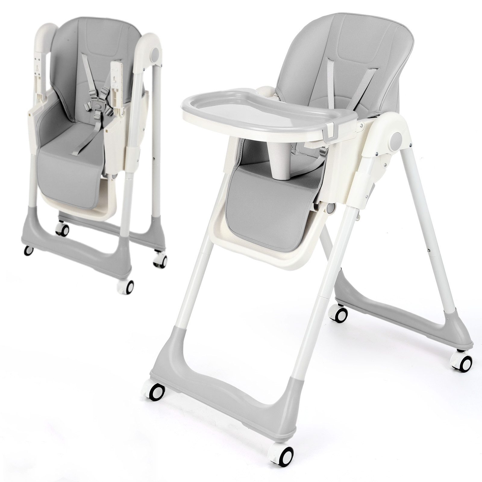 Der Kinderstuhl lässt sich leicht zusammenklappen und stehend verstauen. Der Kunstlederbezug ist abnehmbar und leicht zu reinigen – einfach mit einem feuchten Tuch abwischen. Er ist schmutzabweisend. Das Gestell besteht aus stabilem Metall. Die Beine haben Gummiräder, die den Boden beim Bewegen des Kinderstuhl schonen.