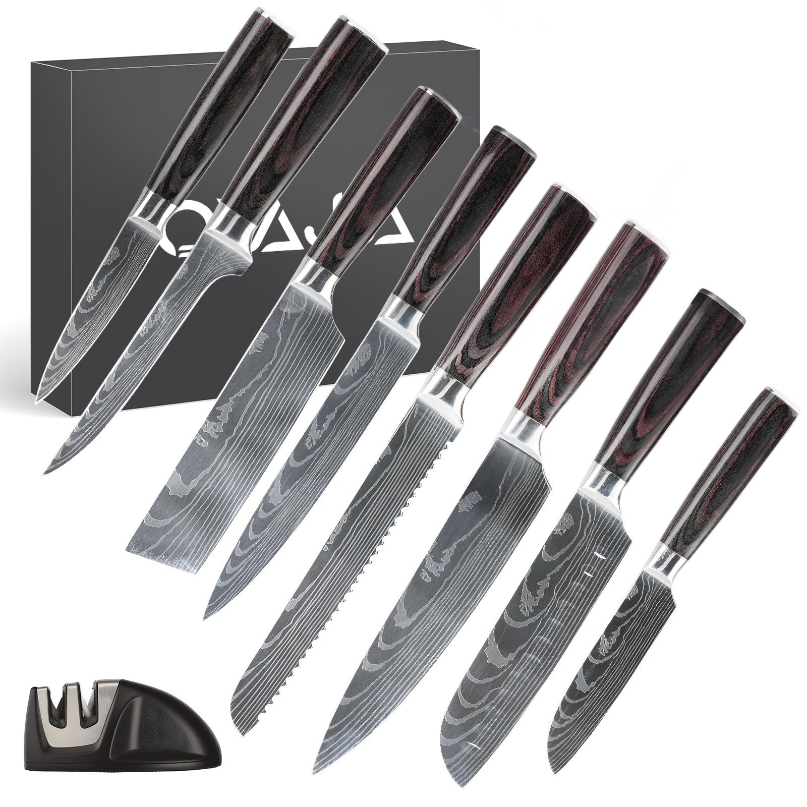 Exquisite Muster: Die Wellenmuster auf beiden Seiten des Messerkörpers sind nicht nur schön und großzügig, sondern verhindern auch das Anhaften von Speisen am Messer, wasserfesten Flecken und schützen die Messeroberfläche vor Kratzern.8 Stücke Küchenmesser sind ideal für professionelle Köche und Koch-Enthusiasten, sowie Anfänger, geeignet für Urlaub Geschenk geben sowie den täglichen Gebrauch.