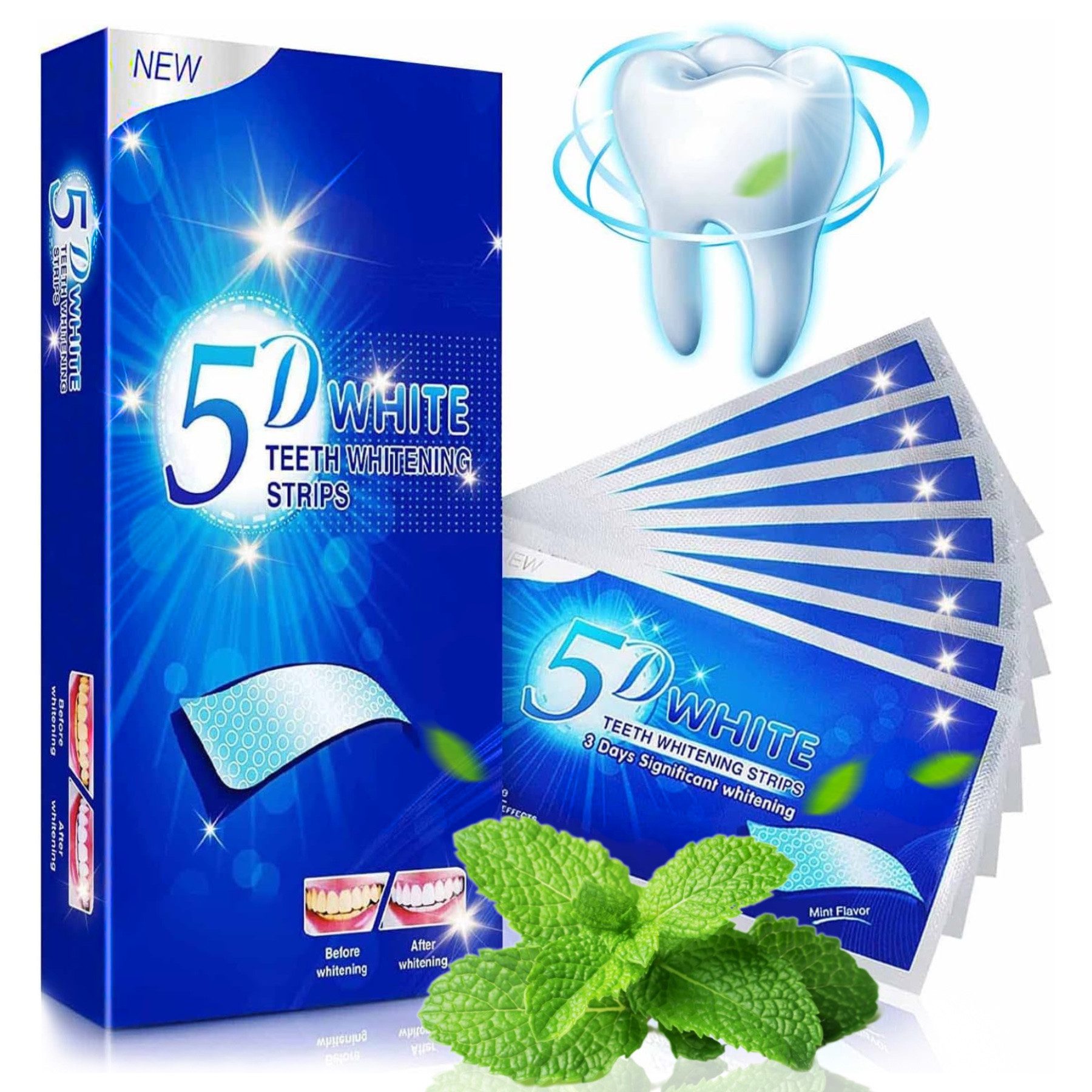 Die 5D White Zahnaufhellungsstreifen, sind ein sicherer und wirksamer Aufheller, der dabei hilft, gelbe Flecken und Zahnbelag zu entfernen und Ihren Zähnen ihre natürliche weiße Farbe zurückzugeben. Dabei handelt es sich um Zahnaufhellungsstreifen für zu Hause, das professionelle Ergebnisse liefert, ohne dass ein Zahnarztbesuch erforderlich ist. Die Zahnaufhellungsstreifen wirken schnell, schmerzfrei und professionell und garantieren perfekte Ergebnisse. Daher sind sie sowohl vor einem wichtigen Ereignis als auch bei der regelmäßigen Pflege eine echte Entdeckung, die Ihren Zähnen einen schneeweißen Glanz verleihen werden.