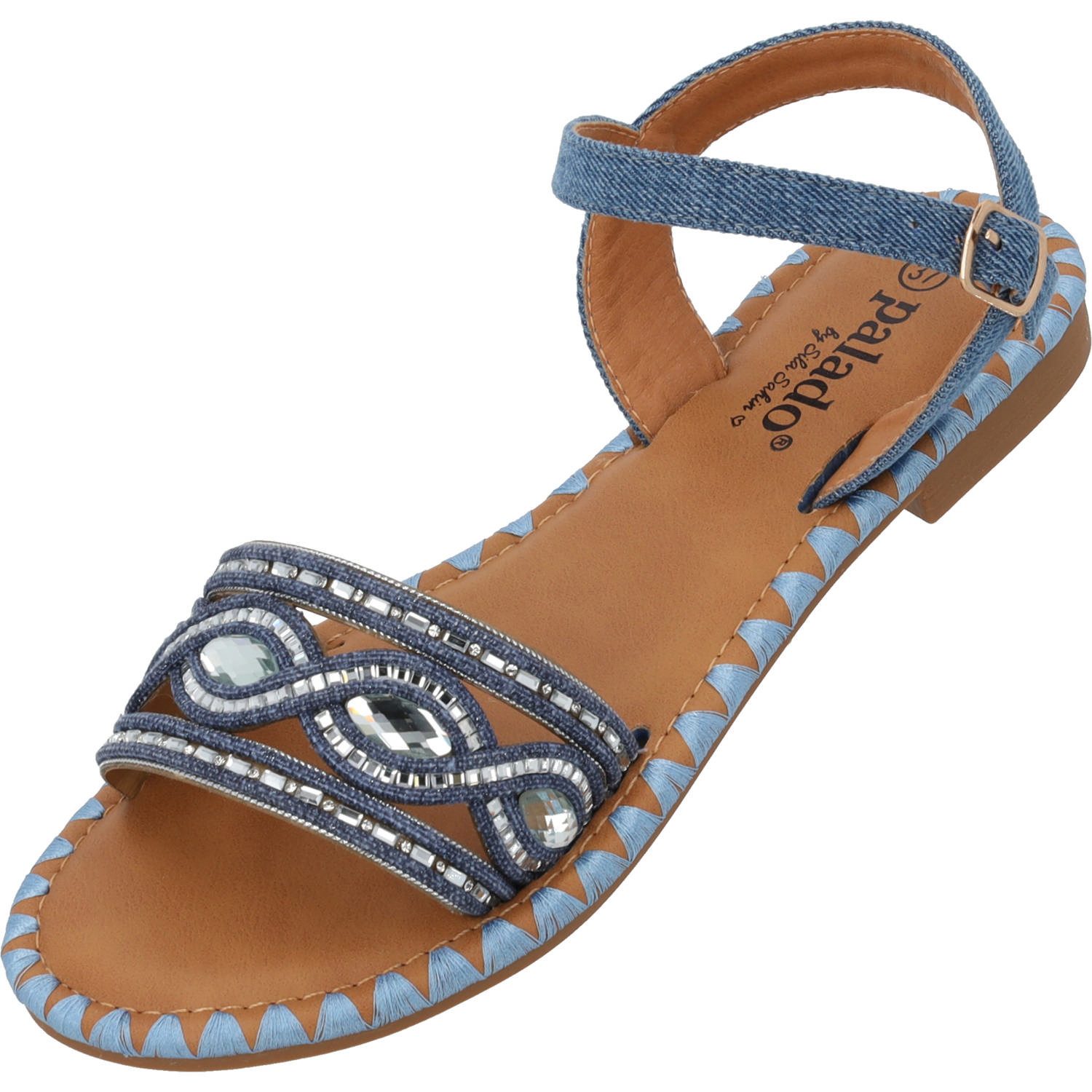 Ein Hauch von Boho-Charme für deine Sommergarderobe! Die Riemchensandale 'Naforao' aus der exklusiven Palado by Sila Sahin Kollektion besticht durch raffinierte Details. Der breite Zier-Riemen ist kunstvoll mit schimmernden Schmucksteinen und feinen Stickereien verziert, während die markante Naht entlang der Sohle einen modischen Akzent setzt. Der schmale Fesselriemen mit Dornschließe sorgt für perfekten Halt und unterstreicht die feminine Silhouette. Ein Must-Have für warme Tage – modisch, bequem und vielseitig kombinierbar.