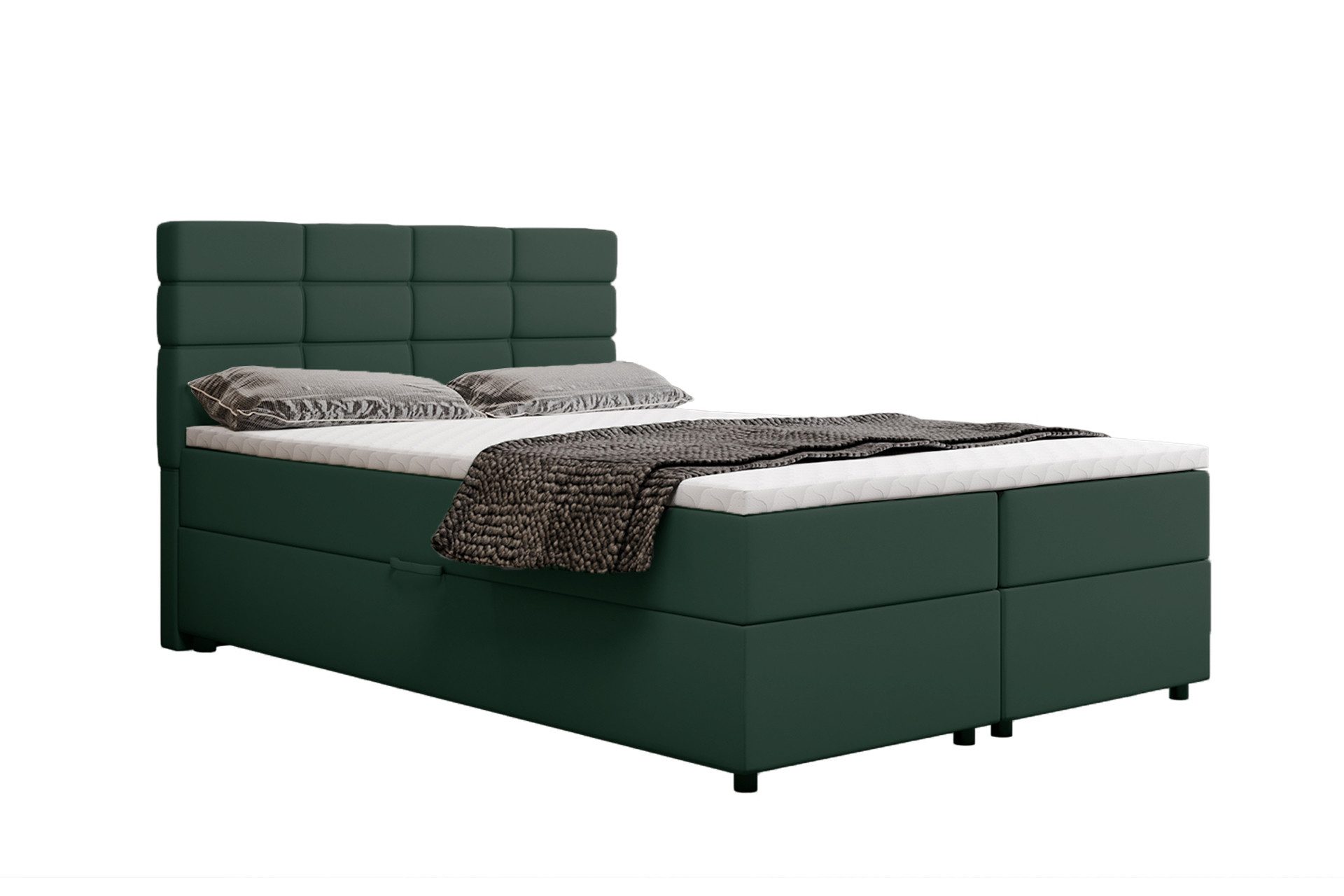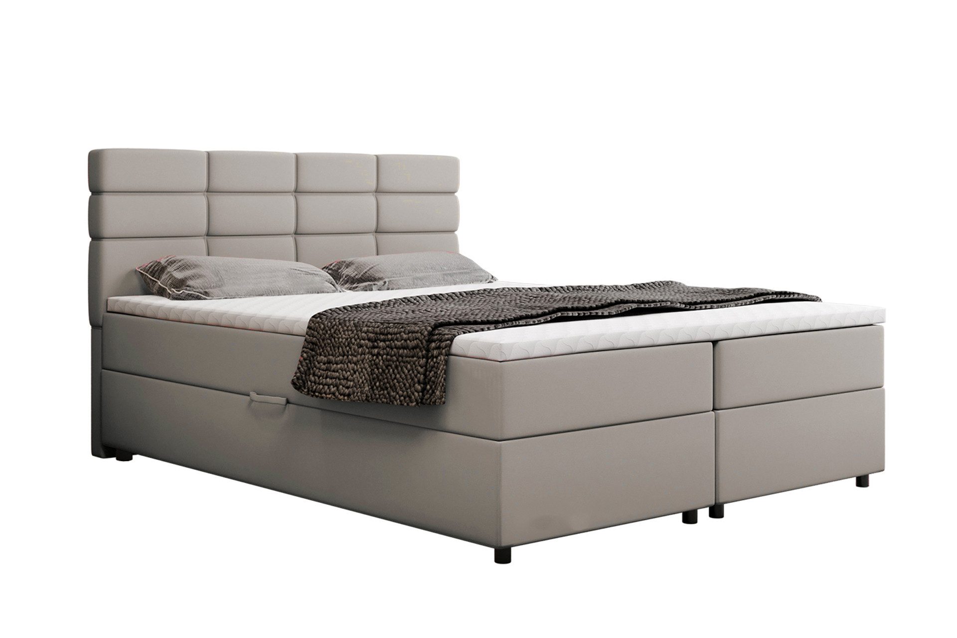 Das Bett REVE bietet Schlaf- und Erholungskomfort und verleiht Ihrem Schlafzimmer durch sein elegantes und modernes Design einen besonderen Charme. Der Hauptvorteil des Bettes REVE ist seine fertige, ergonomische Konstruktion mit Bettkasten und integrierter Bonell-Matratze und Topper. Diese Lösung bietet maximalen Liegekomfort und erfüllt gleichzeitig die Funktion eines Stauraummöbels mit großem Fassungsvermögen. Die tiefe Doppelnaht der Kopfstütze verleiht dem Bett einen einzigartigen Charakter. Wenn Sie sich für das Bett Reve entscheiden, investieren Sie für wenig Geld in Schlafkomfort und langlebige Qualität.