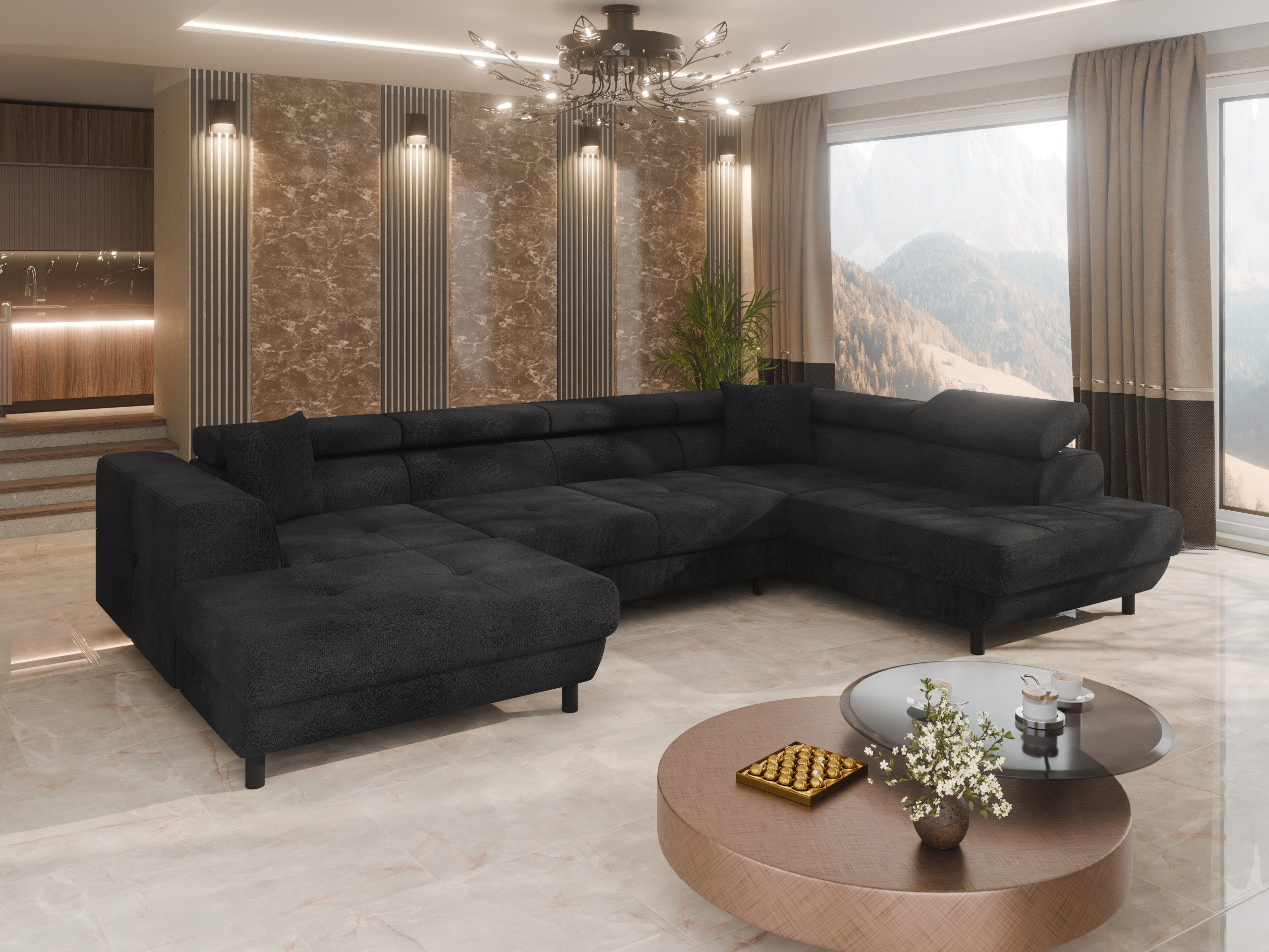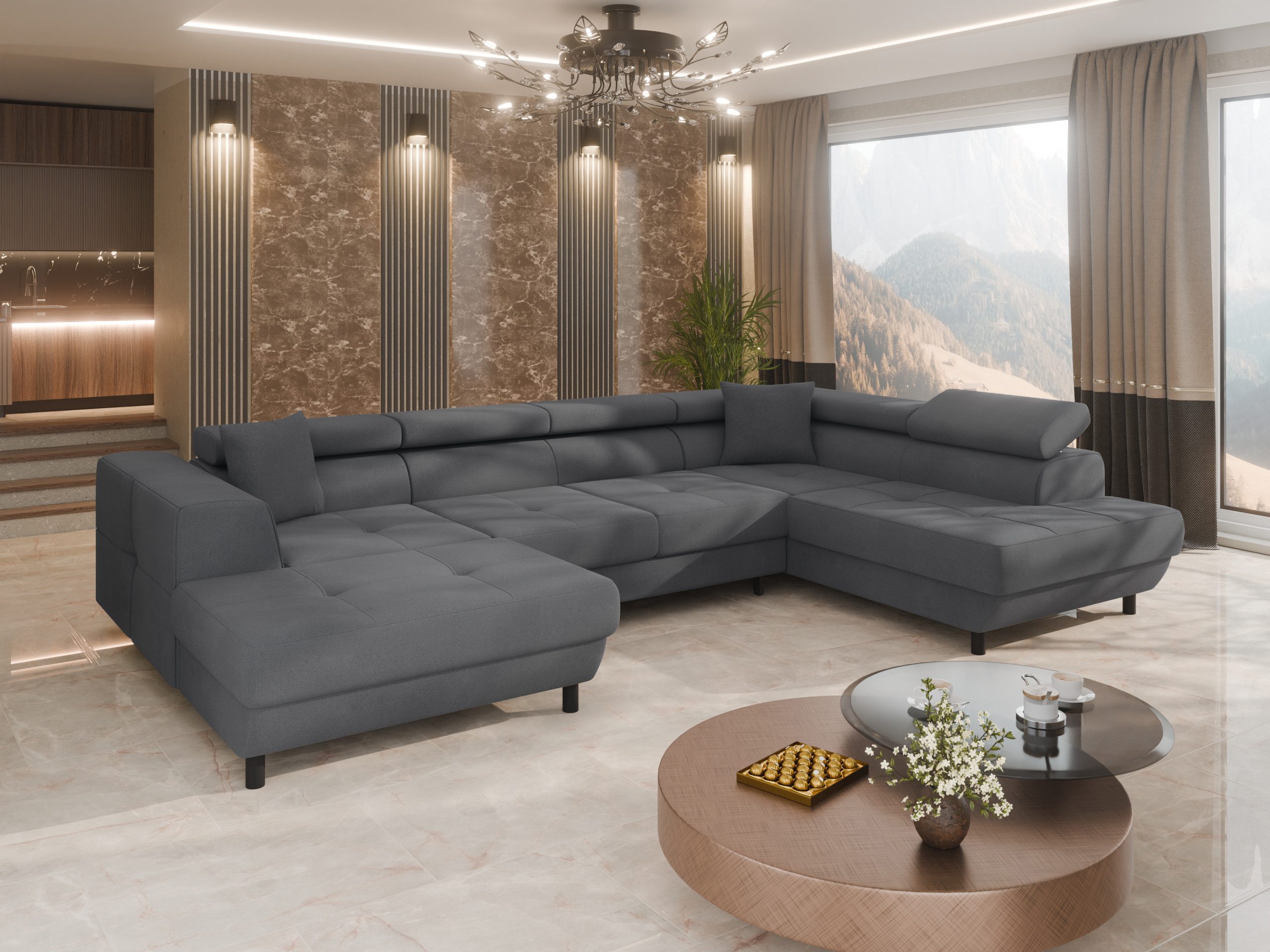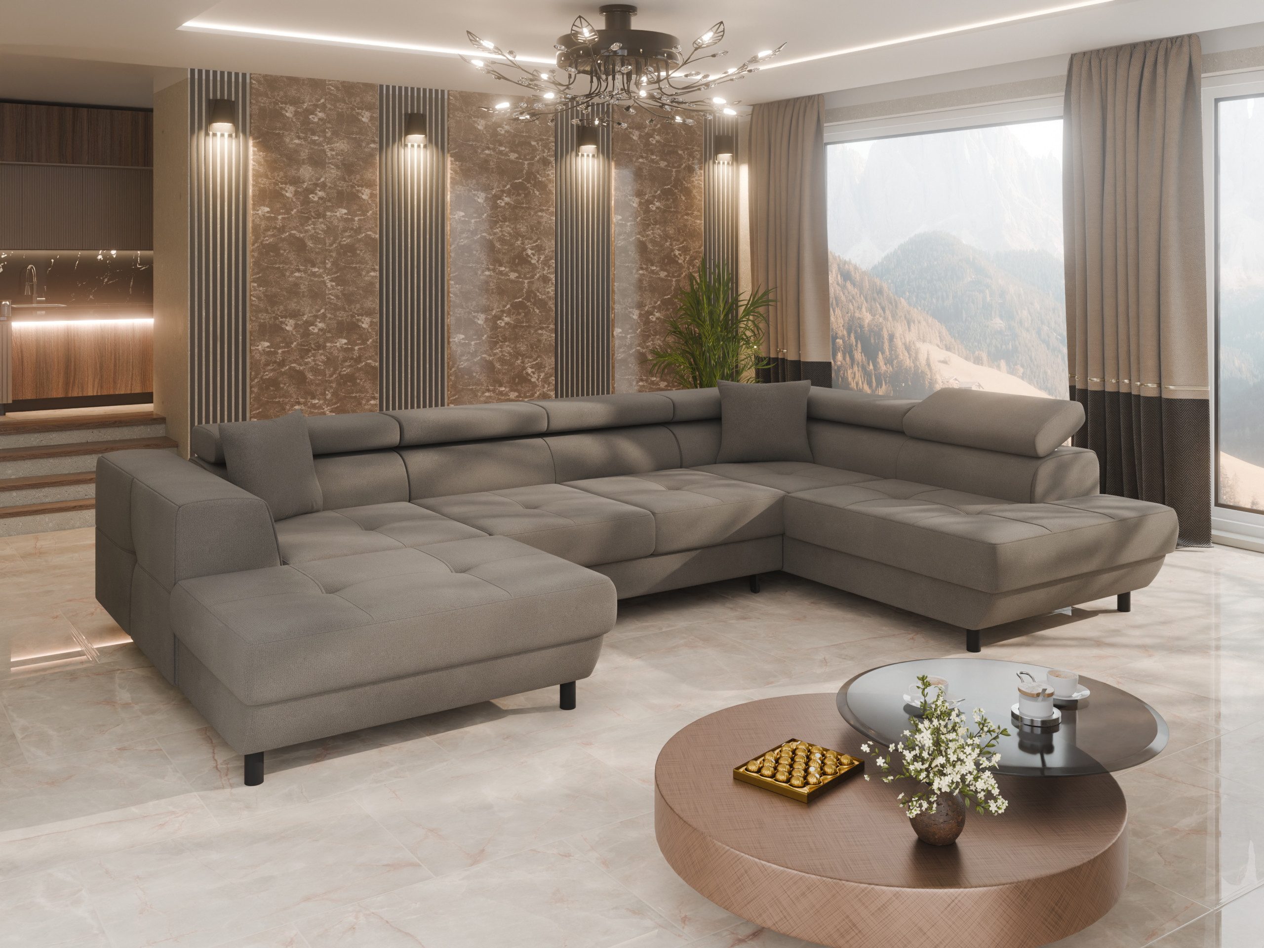 Das VENA I U-Sofa vereint modernes Design, hohen Komfort und praktische Funktionalität. Dank seiner großzügigen Form im U-Design bietet es viel Platz für die ganze Familie. Mit wenigen Handgriffen verwandelt sich das Sofa in eine komfortable Liegefläche, sodass es sowohl tagsüber als gemütliche Sitzgelegenheit als auch nachts als Gästebett genutzt werden kann.