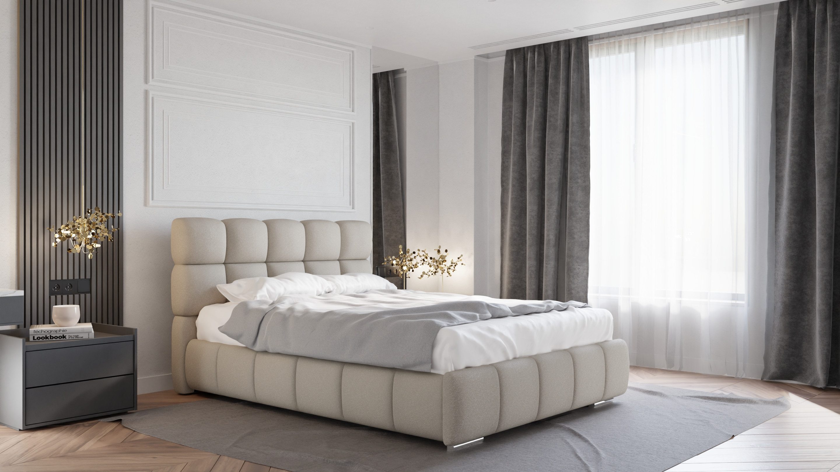 Gönnen Sie sich eine Prise Luxus und Komfort mit dem gepolsterten Bett BLISS – eine außergewöhnliche Kombination aus moderner Eleganz und Funktionalität, die auch die anspruchsvollsten Kunden zufriedenstellen wird. Das BLISS-Bett, das mit einem Fokus auf Komfort und Ästhetik entworfen wurde, fügt sich nahtlos in sowohl moderne als auch klassische Innenräume ein.