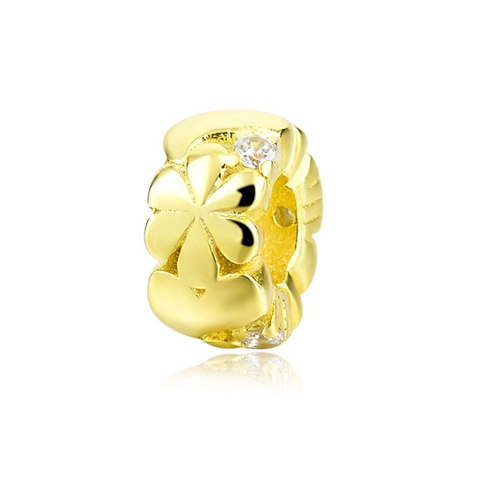 PANDACHARMS Bead Goldene Blüten Zwischenelement Charm, 925 Sterling Silber mit Zirkonia