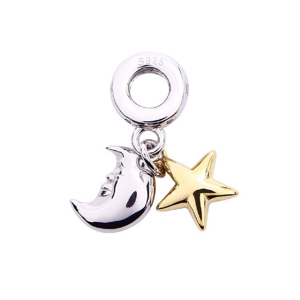 Ein beeindruckender Anhänger mit einem silbernen Mond und einem vergoldeten Stern, auf dem Ring verziert mit Zirkonia Steinen. Für den Blick in den Nachthimmel auch bei Tage.