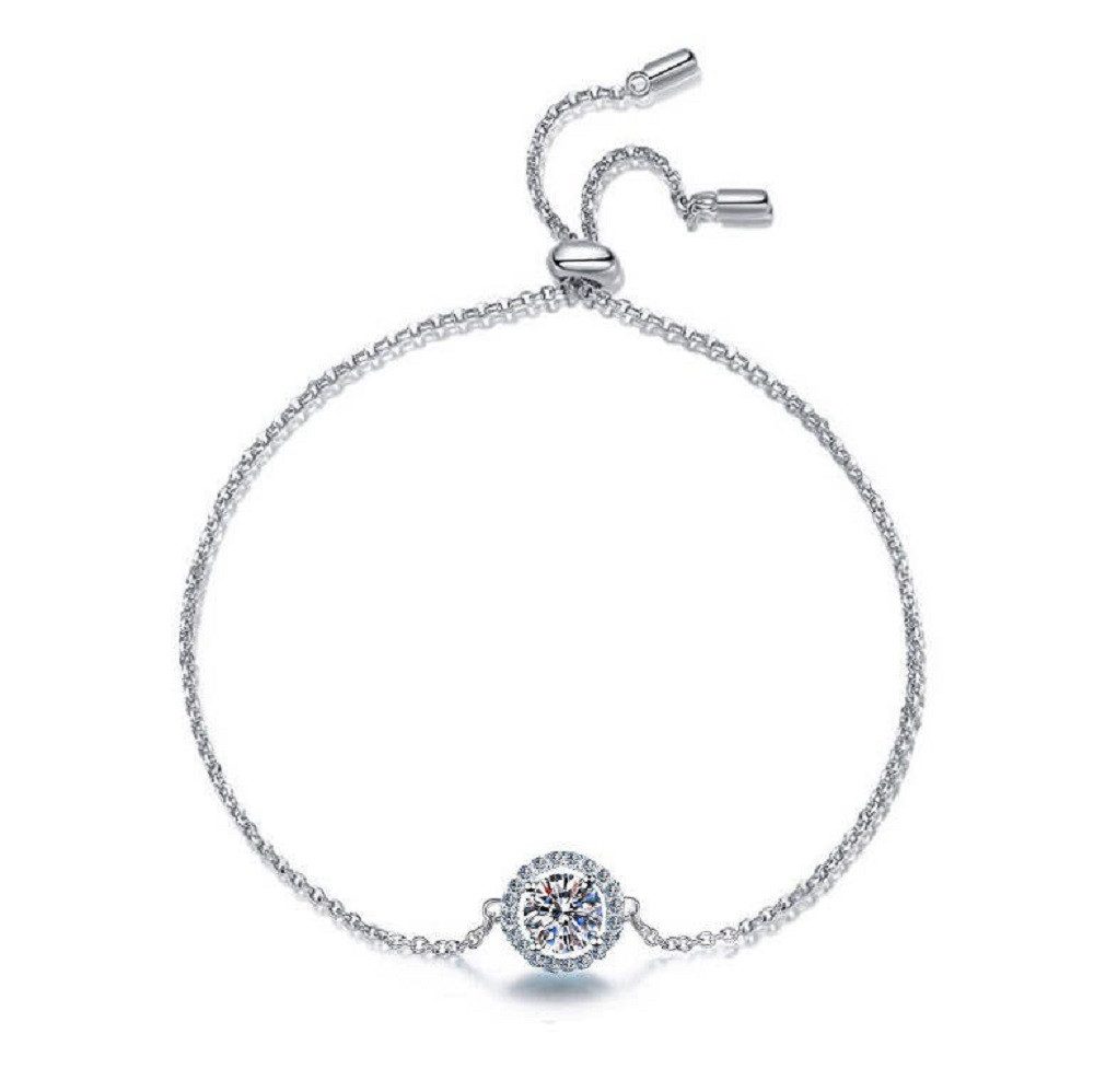 Silber Armband Armkettchen Solitaire, eine zarte Kette aus 925er Sterling Silber mit einem großen, reinweiß / kristallklaren Zirkonia, eingefasst in einem Kreis mit kleinen Steinen. Sehr auffällig und eindrucksvoll macht der große Stein das Armband zu einem echten Hingucker!