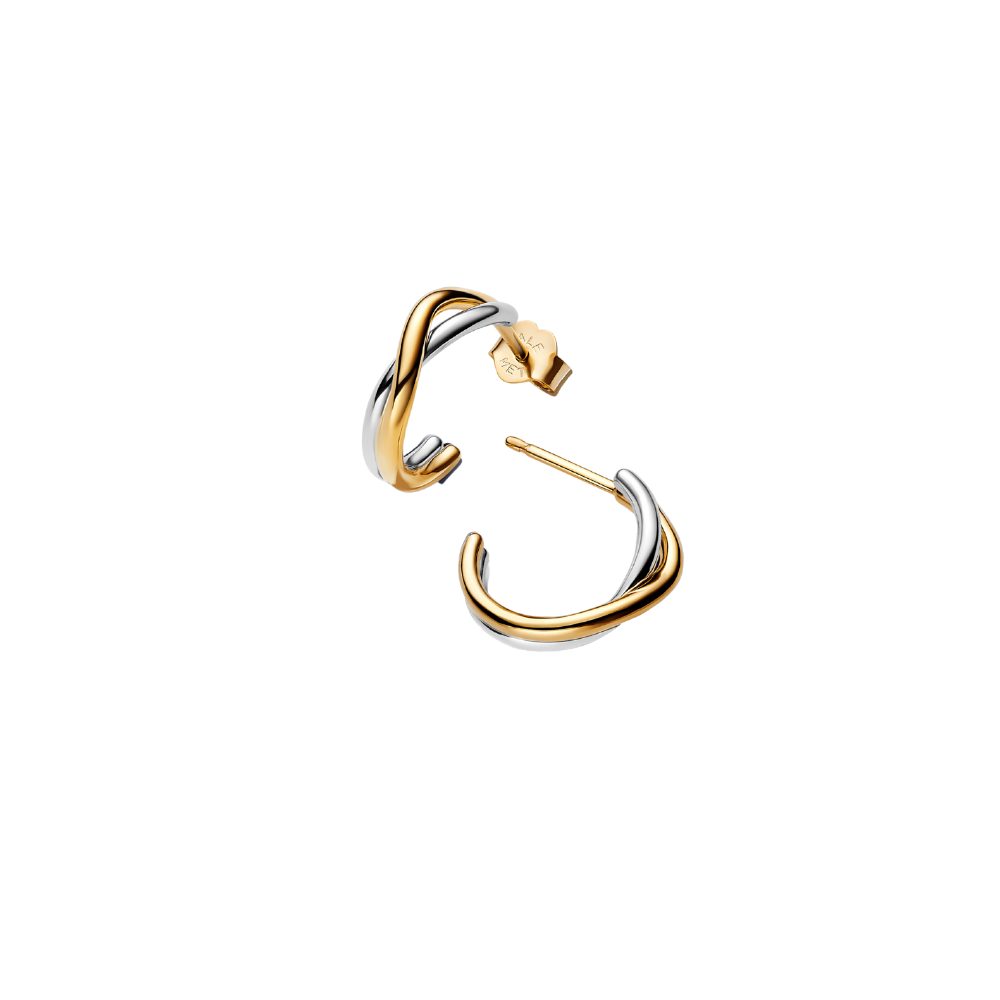 Zwei Metalle, ein eleganter Schwung – die Pandora Creolen aus der Essence Kollektion zeigen, wie harmonisch Kontraste wirken können. Die bicolore Gestaltung vereint vergoldete Metalllegierung mit feinem Sterling Silber in einem kunstvoll verdrehten Design. Organisch, leicht asymmetrisch und von fließender Form – so entstehen moderne Ohrring