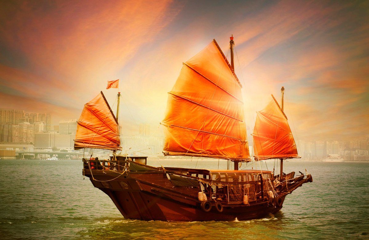 • Ihr Wunschmotiv DSCHUNKE-SEGEL SCHIFF CHINA MEER KÜSTE SONNE HONG KONG Inklusive Tapetenkleister