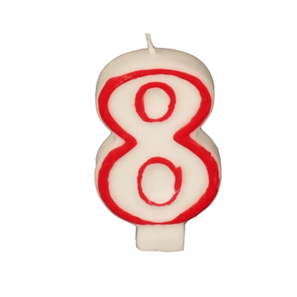 Geburtstagskerze Zahlenkerze 7,3 cm weiss "8" mit rotem Rand