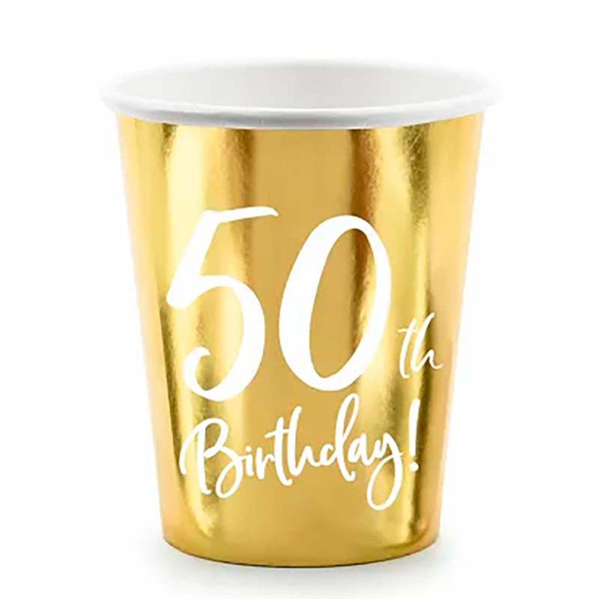 partydeco Einwegbecher Pappbecher Happy Birthday #50 220ml/6Stk. Gold, 100% Papier, Pappe