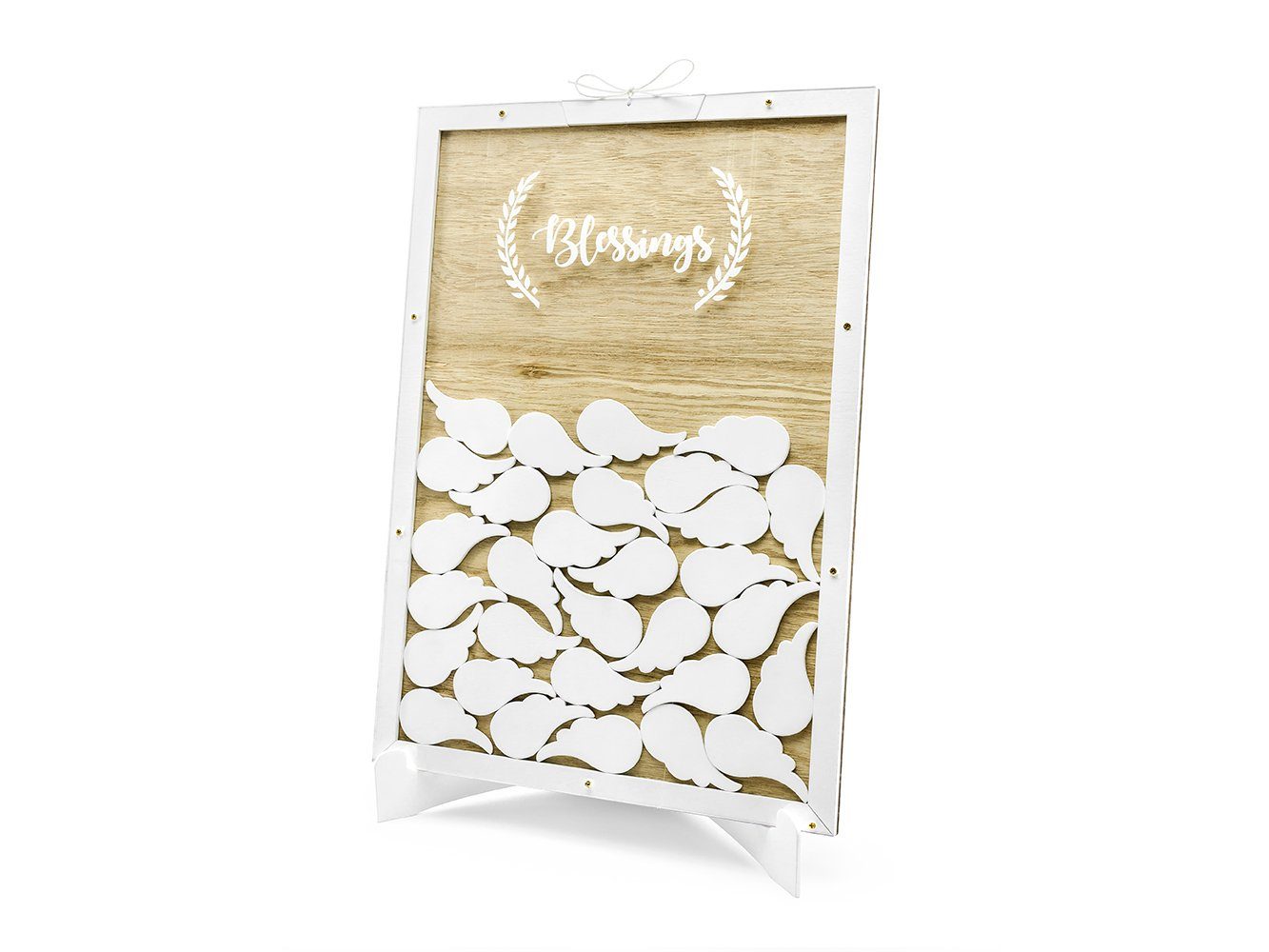 Die flügelförmigen Gästekarten bieten genügend Platz für die persönlichen Wünsche und Sprüche Ihrer Gäste. Ob Sie das Holzgästebuch als Tischdeko für Ihre Hochzeit einsetzen, als liebevolles Geschenk für junge Eltern oder Taufgeschenk mitbringen, dieses Gästebuch wird mit Sicherheit eine unvergessliche Erinnerung sein.