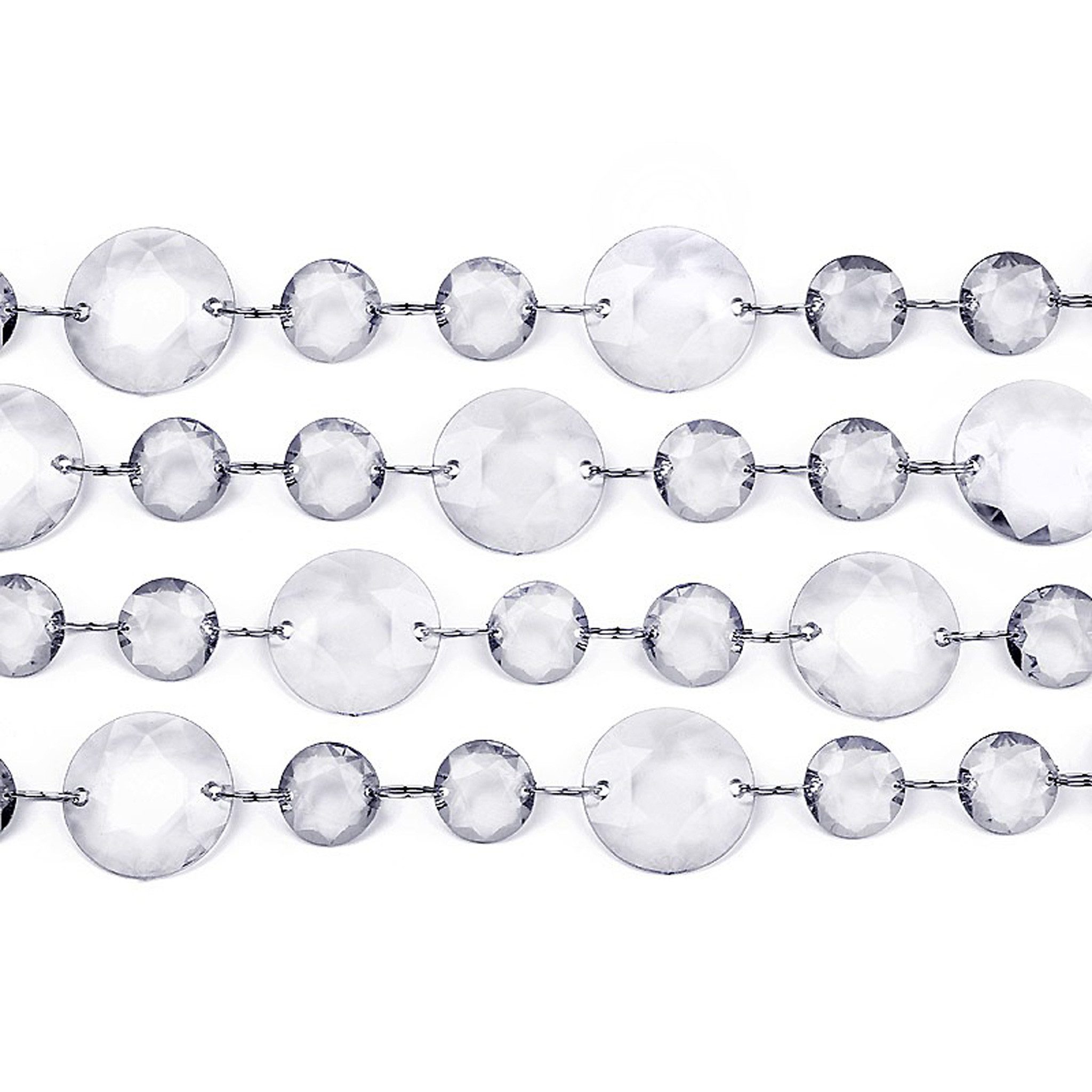 PRODUKT: Kristallgirlande / INHALT: 1 Stück / LÄNGE: ca. 1 m / DURCHMESSER KRISTALLE: klein ca. 1,8 cm, groß ca. 2,8 cm / MATERIAL: Kunststoff - Acryl / FARBE: klar transparent