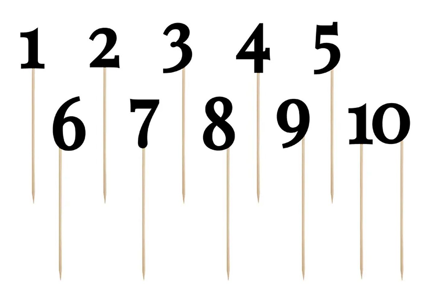 Diese stilvolle und zugleich praktische Tischnummern 1-10 zum Stecken sind die perfekte Lösung, um Übersicht auf Ihrem Tisch zu schaffen. Mit diesen funktionalen Stecknummern können Sie Ihre Tische schnell und einfach kennzeichnen, um Ihren Gästen eine organisierte Atmosphäre zu bieten. Diese stabile Holzstäbe passen zu jeder Einrichtung und verleihen Ihren Tischen eine elegante Note. Die Tischdeko - Zahlen 1 - 10 sind gut lesbar und in einem klaren, kontrastreichen Stil gestaltet. Mit den Nummern von 1 bis 10 sind diese Tischnummern als Platzhalter bzw. als Tischzahlen einsetzbar und ermöglichen es Ihnen, die Tische in der gewünschten Reihenfolge zu nummerieren. Diese Zahlenstecker sind auch ideal für Events mit wechselnden Sitzordnungen oder für Veranstaltungen mit Platzkarten. Diese Tischnummern sind einfach zu verwenden. Sie können - z.B. in eine Vase oder einen Blumentopf als Blumenstecker oder aber auch als Kuchenstecker bzw. Kuchendeko in einen Kuchen oder Torten gesteckt werden. Diese Tortentopper / Kuchentopper als kombinierte Zahl sind auch für Geburtstagstorte geeignet.