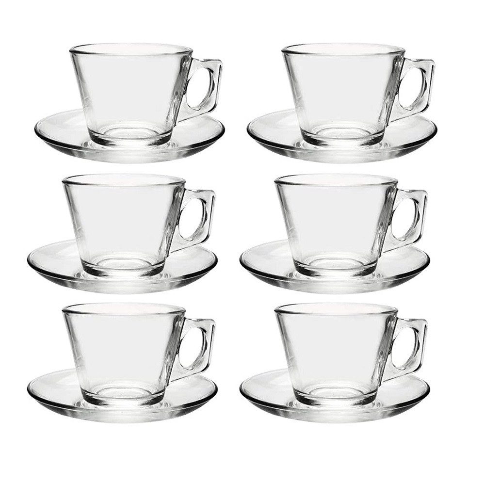 pasabahçe Vela Teetassen-Service – 6 Gläser mit Untertassen (205ml, gehärtetes Glas)