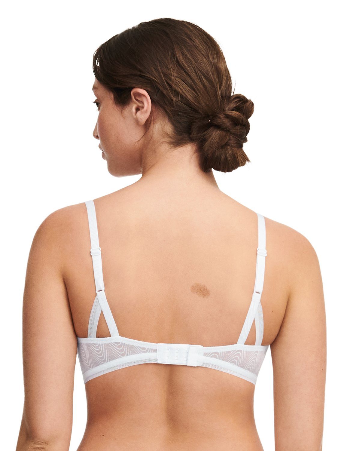 * Soft cups covered with seamless opaque knit, fold overseam, for more invisibility under clothing*Lateral soft wires for more support*Straight back made of fancy tulle, adorned with fancy elastic fishnet band, and lined with stretch tulle from size L*Ribbed straps, fixed and adjustable, decorated with elastic fishnet band at the back*4rank hook and eye, made of recycled materials