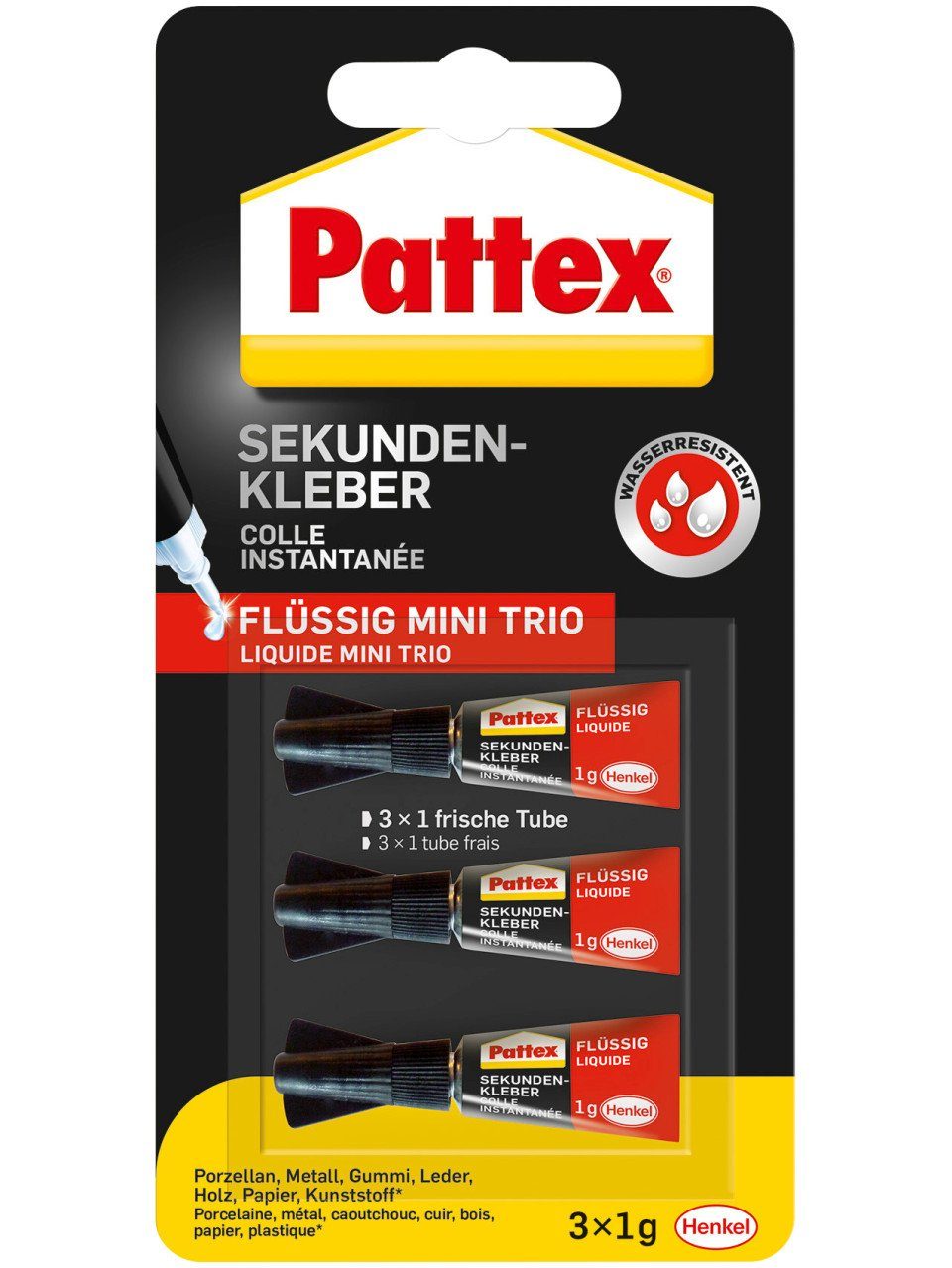 Gefahrenhinweise | Signalwort:AchtungGefahrenhinweiseEUH202 Cyanacrylat. Gefahr. Klebt innerhalb von Sekunden Haut und Augenlider zusammen. Darf nicht in die Hände von Kindern gelangen..H315 Verursacht Hautreizungen.H319 Verursacht schwere Augenreizung.H335 Kann die Atemwege reizen.SicherheitshinweiseP261 Einatmen von Staub/Rauch/Gas/Nebel/Dampf/Aerosol vermeiden.P501 Inhalt/Behälter gemäß nationalen Vorschriften der Entsorgung zuführen.P302+P352 BEI BERÜHRUNG MIT DER HAUT: Mit viel Wasser und Seife waschenP305+P351+P338 BEI KONTAKT MIT DEN AUGEN: Einige Minuten lang behutsam mit Wasser spülen. Eventuell vorhandene Kontaktlinsen nach Möglichkeit entfernen. Вперед spülen. |