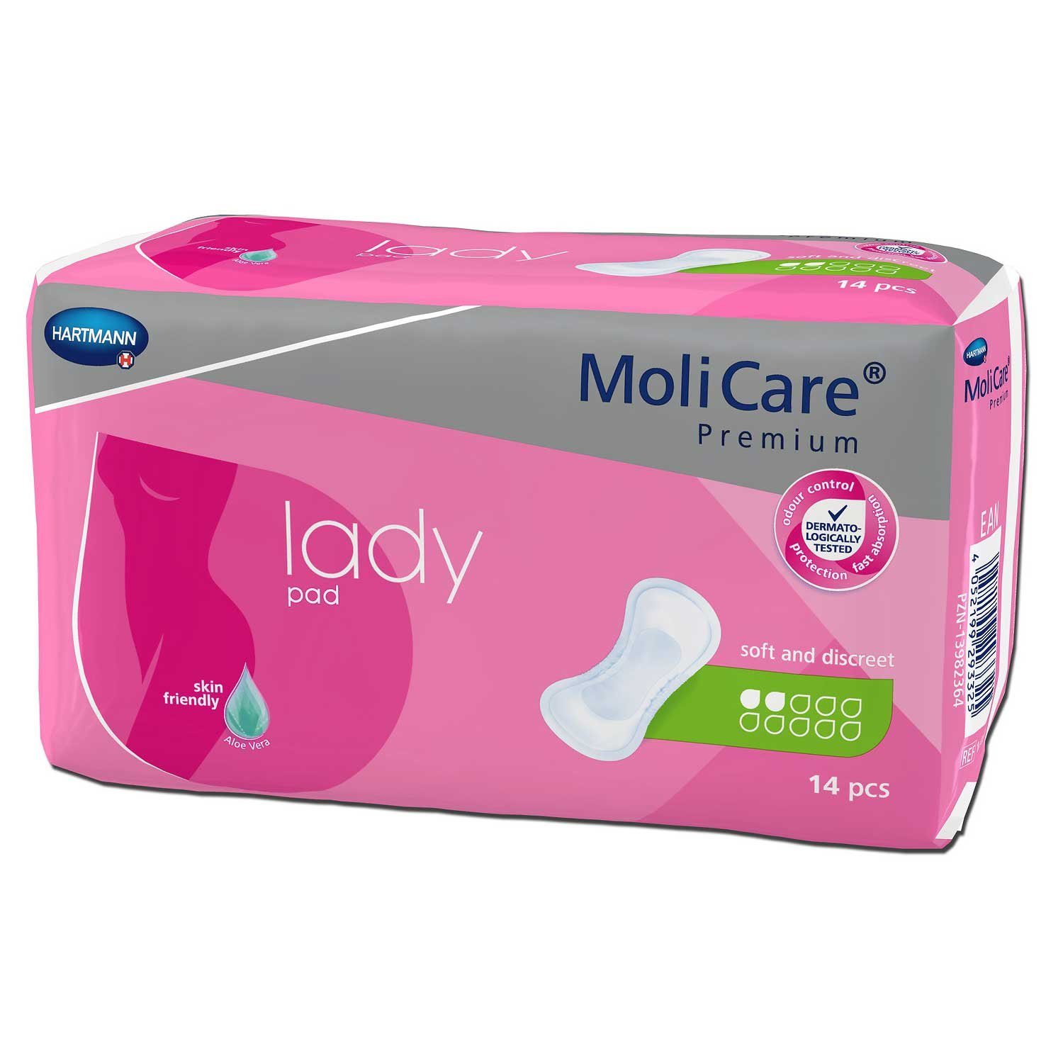 Die MoliCare® Premium Lady Pad mit einer Saugstärke von 2 Tropfen ist eine diskrete und komfortable Inkontinenzeinlage für Frauen, die bei mittlerer Blasenschwäche zuverlässigen Schutz benötigen. In dieser Packung befinden sich 14 Einlagen, die sich ideal für den täglichen Schutz bei moderatem Urinverlust eignen.