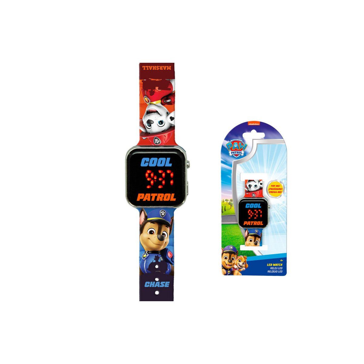 Die Paw Patrol digitale LED-Uhr ist die perfekte Uhr für kleine Fans der beliebten Hundepatrulle! Sie bietet eine praktische LED-Anzeige, die bei Berührung aufleuchtet, und ist ideal für den Alltag von Kindern. Mit ihrem robusten Design und dem leuchtenden Paw Patrol Motiv ist sie sowohl funktional als auch stylisch!