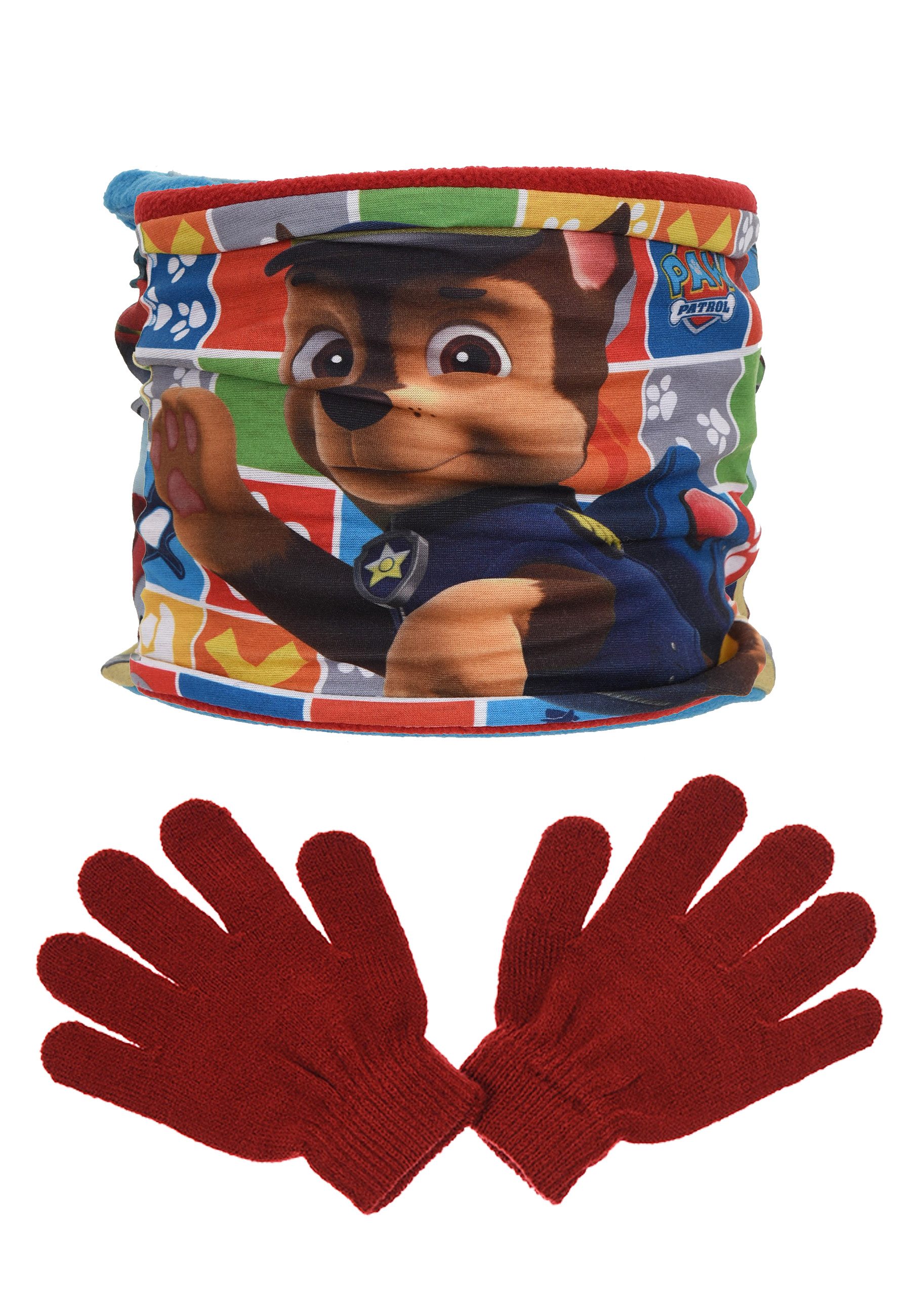 Der Schal und die Handschuhe sind in den leuchtenden Farben Blau und Rot gehalten, die das Paw Patrol-Thema perfekt ergänzen. Der Schal zeigt die beliebten Charaktere Chase, Marshall und Rubble und sorgt für Begeisterung bei jedem kleinen Fan.