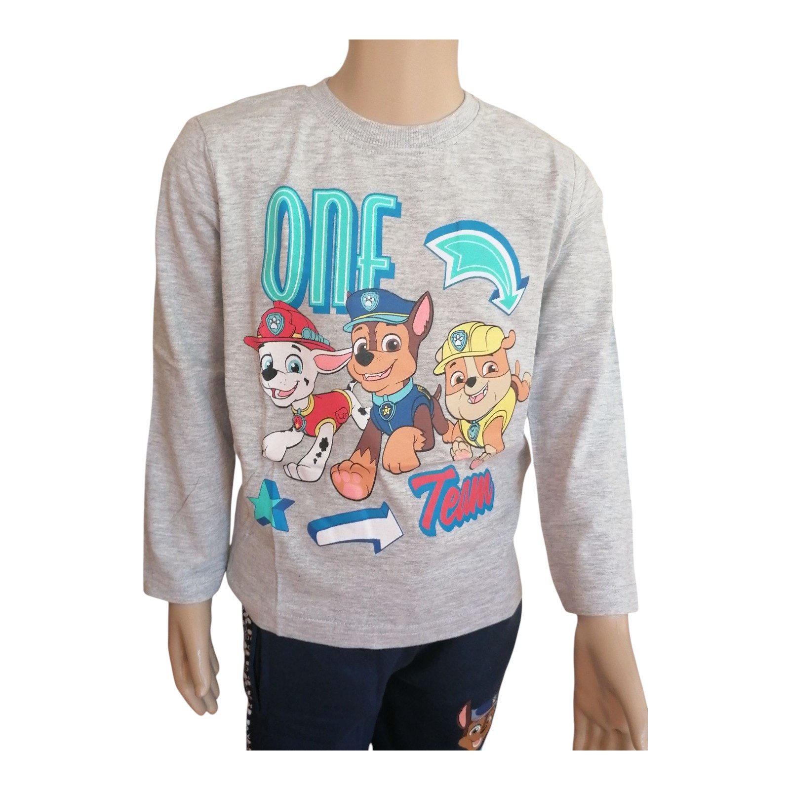 Teamwork wie bei Marshall, Chase und Rubble: Dieses PAW Patrol Langarm-Shirt ist der lässige Alltagsbegleiter für Schule, Kita und Freizeit. Das weiche Baumwoll-Jersey (ca. 160 g/m²) liegt angenehm auf der Haut, der Rundhalsausschnitt erleichtert das An- und Ausziehen und der „One Team“ Frontprint bringt den Lieblings-Look kleiner Heldinnen und Helden auf den Punkt.