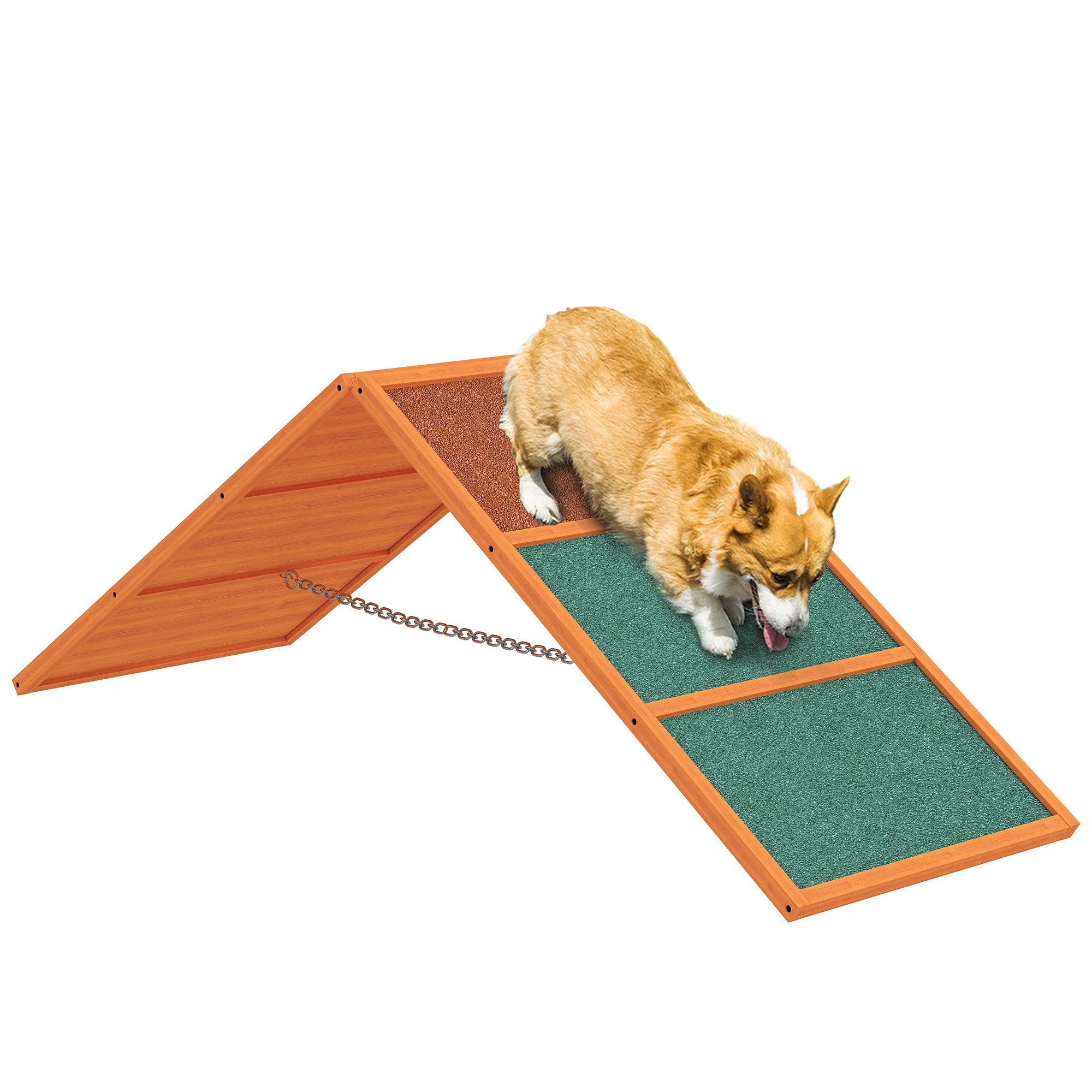 ● Farbe: Orange+Braun+Grün ● Material: Fichtenholz ● Gesamtabmessungen: 173B x 59T x 66H cm (niedrigste) ● Einzelnen Rampenelement: 106B x 59T cm ● Maximale Höhengröße: 123B x 59T x 90H cm ● Mindestneigungswinkel: 34° ● Kettenlänge: 109 cm ● Maximale Belastung: 40 kg