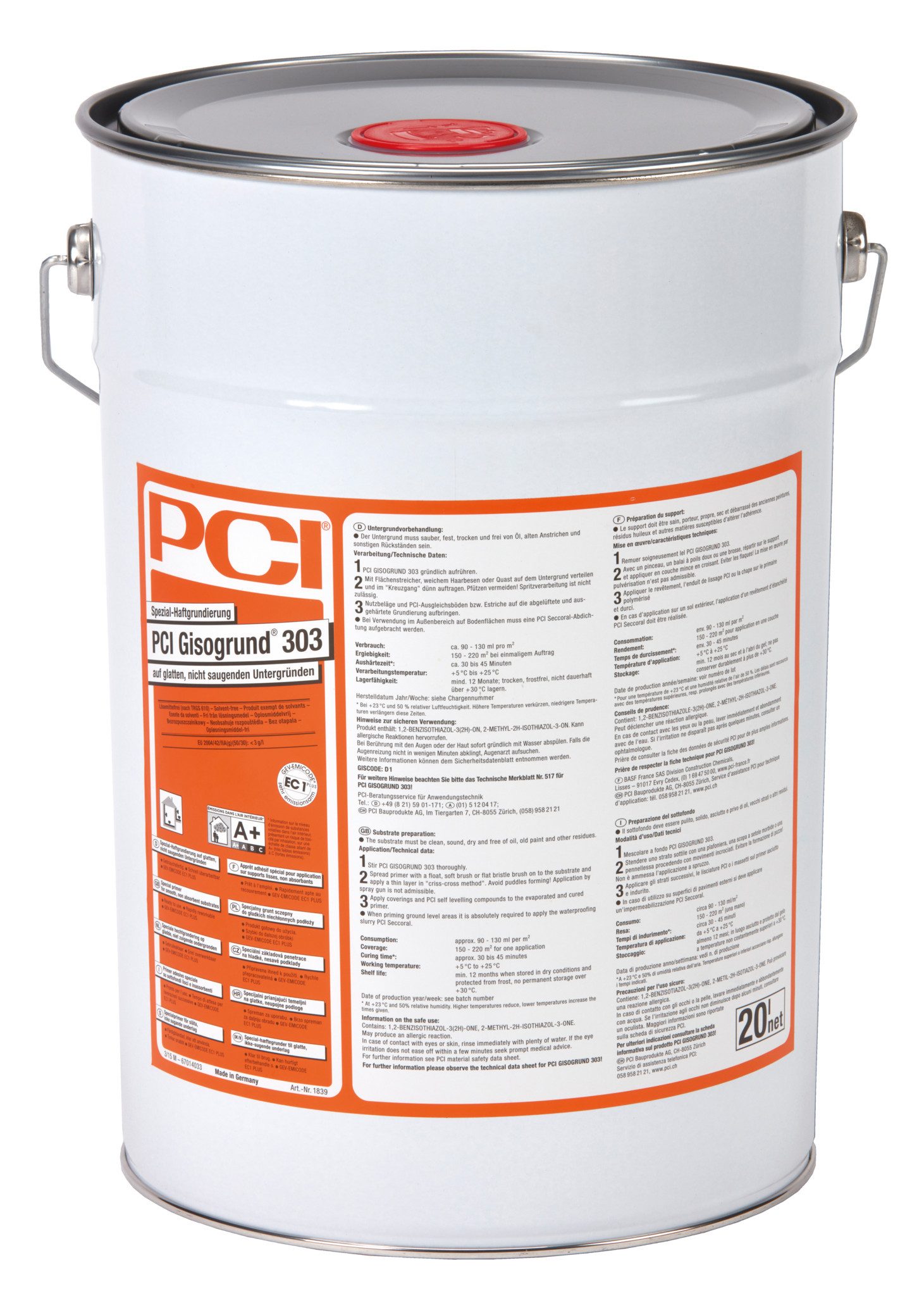 Spezial-Haftgrundierung auf glatten, nicht saugenden Untergründen. Anwendungsbereiche Für innen und außen. Für Wand und Boden. Zum Grundieren von dichten, nicht saugenden Belägen wie Terrazzo, keramischen Fliesen und Platten, glasierten Klinkern, Naturwerksteinen und Kunststeinen, Untergründen mit Belagskleberesten sowie Asphaltplatten oder fest haftenden und angeschliffenen PVC-Belägen. Vor dem Verlegen von keramischen Fliesen und Platten mit PCI-Fliesenklebern, wie z. B. PCI Flexmörtel S1, PCI Flexmörtel S1 Flott PCI Nanolight etc. Vor dem Verputzen mit Betonspachtel PCI Polycret 5 sowie PCI Pericret. Eigenschaften Lösemittelfrei nach TRGS 610; Giscode D 1. Sehr emissionsarm PLUS, GEV-EMICODE EC 1 PLUS. EU 2004/42/IIA(g)(50/30): < 3 g/l. Schnell zu überarbeiten. Klebefrei nach ca. 30 bis 45 Minuten. Gebrauchsfertig, ohne Mischen verarbeitbar. Mit optimierter Verarbeitbarkeit im Roll- und Streichverfahren. Hohe Verbundhaftfestigkeiten, sichere Haftung von nachfolgenden Belägen. Nassfest, kann, falls keine Abdichtung erforderlich ist, bei moderater Feuchtigkeitsbeanspruchung direkt mit Fliesen belegt werden. Kontrollfarbe hellgelb, die grundierte Fläche ist leicht erkennbar.