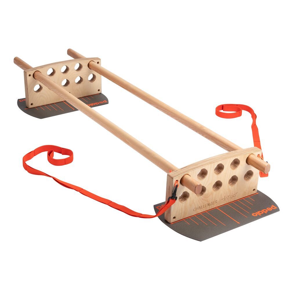 Der Pedalo Balance-Trainer "Challenger Artist" zeichnet sich durch seine vielseitigen Anwendungsmöglichkeiten aus. Er kann überall genutzt werden, da er schnell aufgebaut und indoor- sowie outdoorgeeignet ist. Die Holzstäbe stecken Sie hochkant oder flach in die Seitenteile. Das gibt dem Fuß unterschiedliche Reize und stimuliert diesen. Die Holzstäbe können auf unterschiedliche Höhen eingestellt werden, wodurch sich die Hebelverhältnisse ändern und Dysbalancen einfacher zu erkennen sind. Durch die Verstellmöglichkeiten eignet er sich für Anfänger: innen und Profis gleichermaßen. Für einen besseren Halt bei den Übungen sind 2 Antirutschmatten dabei. Wichtig ist, dass die Holzstäbe über die Seitenteile hinausragen, damit die Stäbe bei den Übungen fest bleiben. Der Challenger Artist ist mit dem Challenger Single kombinierbar.