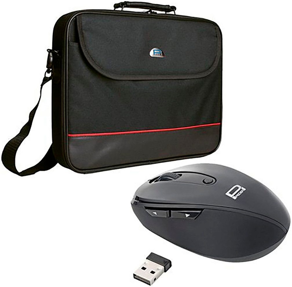 Die modische PEDEA Notebooktasche ist für alle, die Ihr Notebook leicht und flexibel transportieren wollen. Sie ist mit einem stabilen Schutzrahmen aus Hartplastik ausgestattet, damit ein optimaler Schutz vor Kratzern und Beschädigungen gewährleistet ist. Bei Regen und Nässe bietet die Tasche höchste Sicherheit dank wasserabweisenden Materialien. Hinzu kommen die speziellen Fächer zur Organisation Ihrer Dokumente. Der beiliegende Schultergurt kann optional an die Tasche geklippt werden und somit zur Schultertasche umfunktioniert werden. Hinzu kommt in diesem Set die kompakte kabellose PEDEA Maus mit optischen Sensor und Abtastrate von 1000 dpi. Die handgerechte Form und die weiche, gummierten Griffflächen sorgen für höchsten Komfort und optimale Kontrolle. Durch die kompakten Maße ist die Maus perfekt für den mobilen Einsatz im z.B. mit einem Notebook geeignet. Der optische 1000 dpi Sensor arbeitet präzise und schnell auf nahezu allen Oberflächen. Die Verbindung zwischen Maus und dem Mini Funk-Receiver wird nach dem einstecken in den USB Anschluss hergestellt, es wird kein zusätzlicher Treiber benötigt. Die benötigte Batterie ist im Lieferumfang enthalten sowie eine ausführliche Bedienungsanleitung.