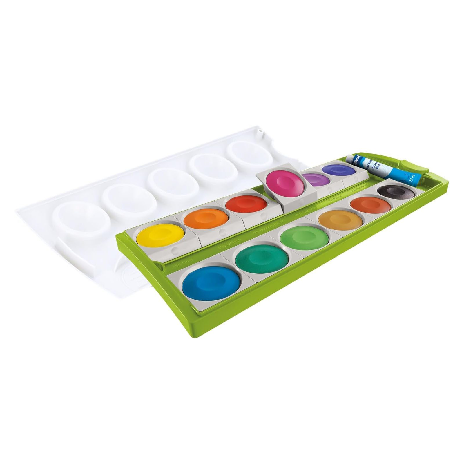 Ob in der Schule oder Zuhause - der Malkasten K12® von Pelikan bietet Kindern und jungen Künstlern zwölf kräftige Farben, um Ihrer Kreativität Ausdruck zu verleihen. Durch das funktionelle Design des Deckels ist das Reinigen dieses Malkastens (Tuschkasten) nach dem Malen ein wahres Kinderspiel. Durch seine großen Drucktasten lässt sich der Farbkasten für Kinder einfach Öffnen und Спрятать.