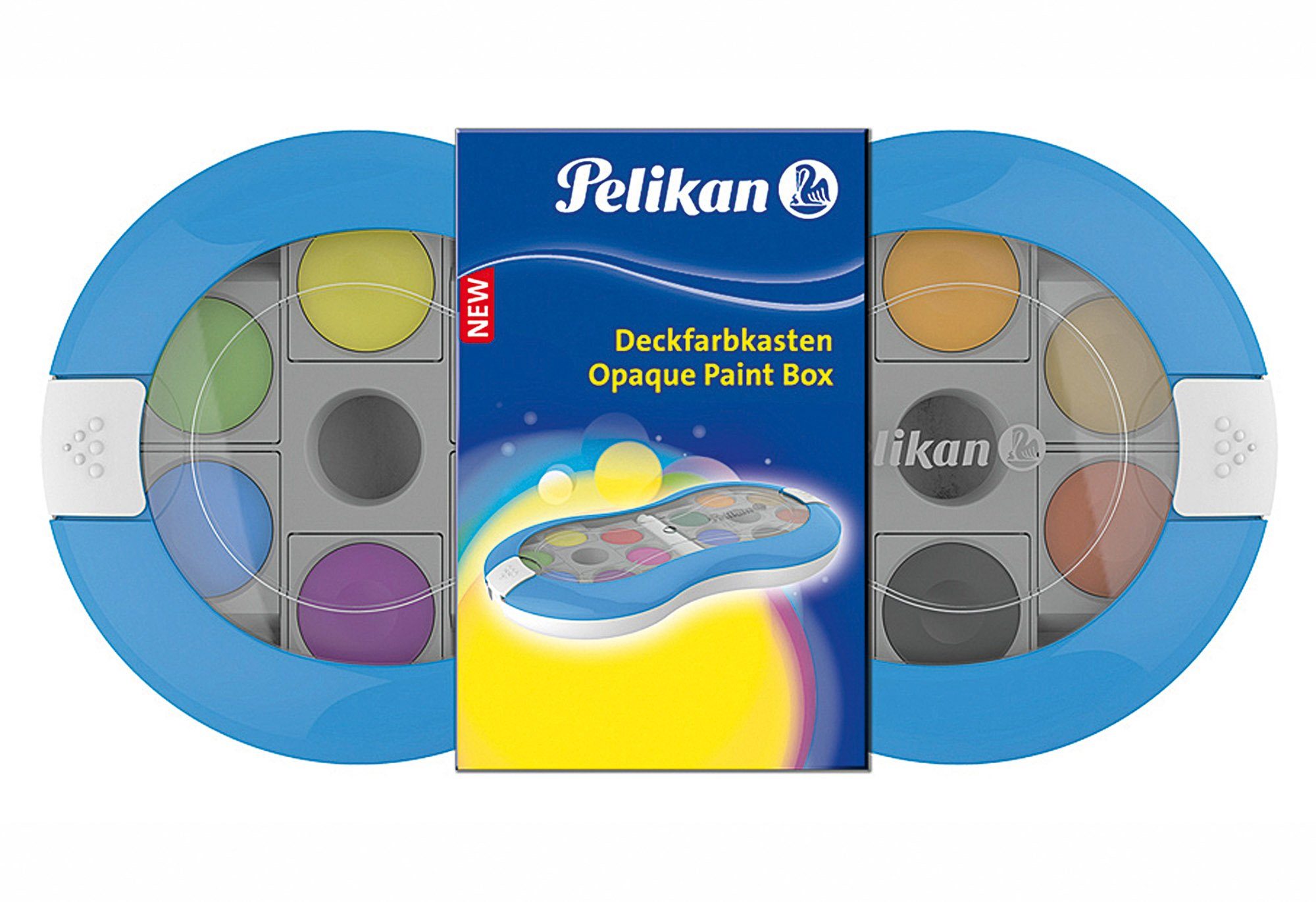 Pelikan Deckfarbkasten 'Space' mit 12 auswechselbaren Farbschälchen. Die Qualitätsfarben mit lichtechten Pigmenten sorgen für grenzenlosen Malspaß und brillante Bilder. Er verfügt über 10 große Mischfelder, um die verschiedensten Farbnuancen anzumischen. In der Mitte der Mischpalette befindet sich auch Platz für weitere Malutensilien wie Pinsel. Der sehr stabile Malkasten ist mit zwei praktischen Klickverschlüssen versehen, die sich von Kindern leicht öffnen lassen. Der 'Space' ist somit perfekt zum Mitnehmen für Kindergarten und Schule geeignet.