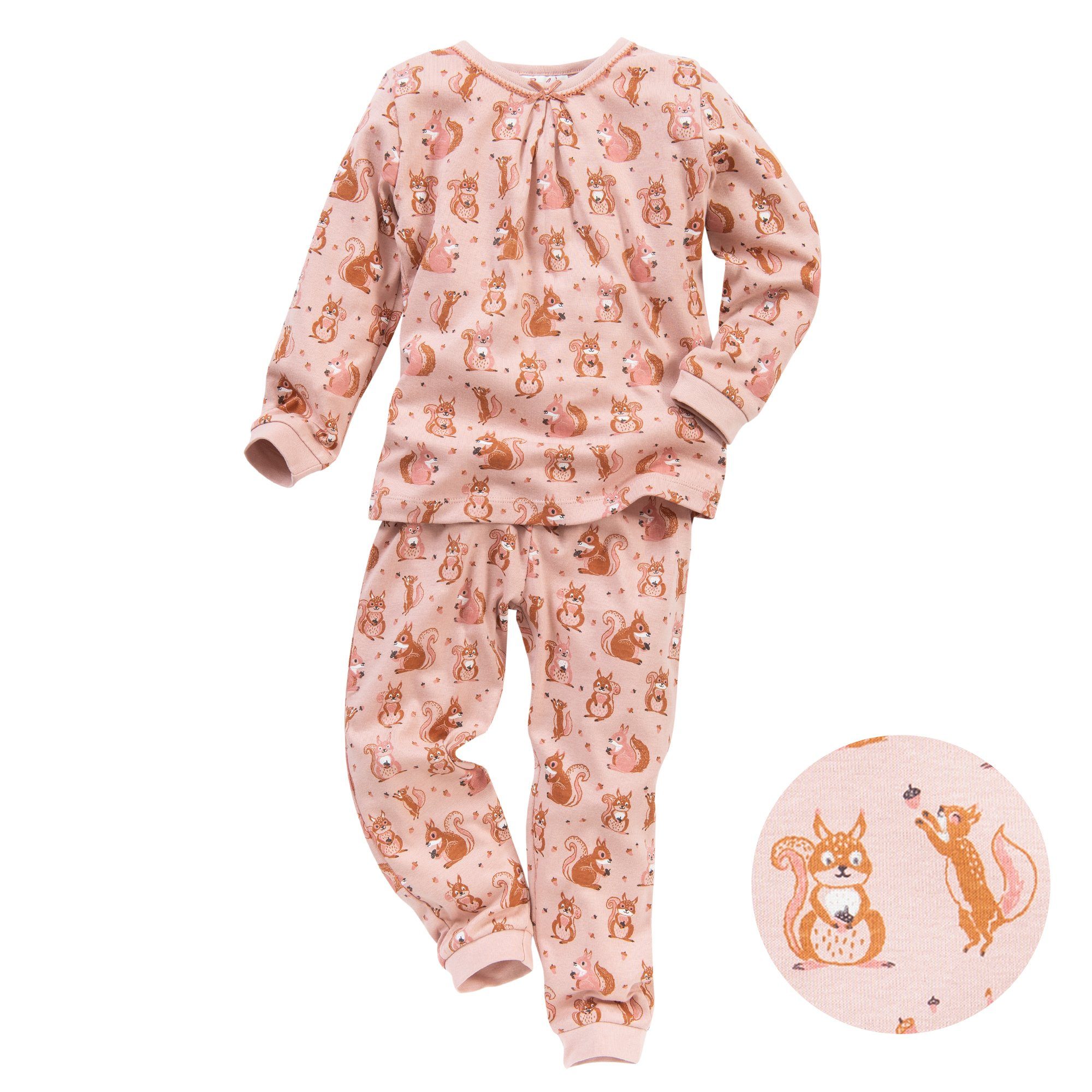 Husch husch ins Bett, Kinder! Auch Eichhörnchen schlafen nachts. Besonders gut, wenn sie einen so tüchtigen Tag hinter sich gebracht haben, wie die Eichhörnchen in dem liebevoll gestalteten Druck unseres Pyjamas. Die Basisfarbe dieses zweiteiligen Langarm-Modells aus anschmiegsamem Rippstoff ist rosa. Liebevolle Details wie die leichte Raffung im Brustbereich und die Häkelkante mit Zierschleife am Ausschnitt, machen diesen Schlafanzug zu einem zeitlosen Lieblingsstück, das man gerne innerhalb der Familie oder im Freundeskreis weitergibt. - Gummizug im Bund - der eher großzügige Schnitt sorgt für erholsamen Schlaf - 100% Baumwolle aus kontrolliert biologischem Anbau, "organic" gem. GOTS, zertifiziert durch Ecocert Greenlife, Liz. Nr. 151811 - Naturfasern wie Baumwolle laufen beim ersten Waschen etwas ein. Damit du an deinem Textil lange Freude hast, haben wir dies bereits im Schnitt berücksichtigt