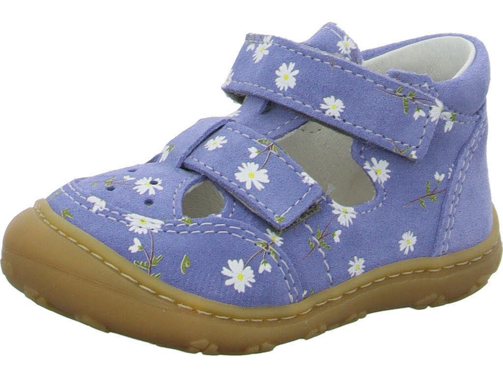 Das Obermaterial aus Veloursleder ist geschmeidig und robust. Die gepolsterte und herausnehmbare Leder-Innensohle bietet zusätzlichen Komfort und unterstützt die natürliche Fußform. Diese Lauflernschuhe haben eine durchschnittliche Passform, die weder besonders schmal noch besonders breit ist. Ein guter Kinderschuh bietet ausreichend Spielraum für wachsende Füße und freie Bewegung. Deshalb sollte er beim Anprobieren vorne etwas Luft lassen.