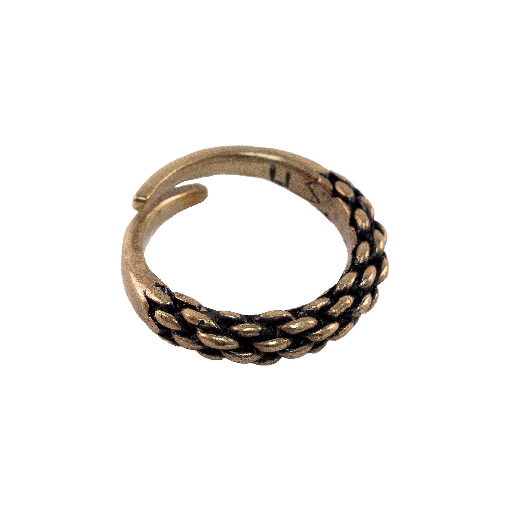 Der Wikinger Ring bronze "Chain" ist eine Nachbildung eines historischen Fundes, der vor Jahrhunderten gefertigt wurde. In allen Regionen der gesamten Wikingerzeit war diese Ring-Typ sehr beliebt. Im Gegensatz zum originalen Wikingerring, der aus zwei unterschiedlich straken Drähten bestand, ist unsere Nachbildung aus einem Stück gegossen und an der Innenseite abgeflacht, um einen angenehmeres Tragegefühl zu gewährleisten.