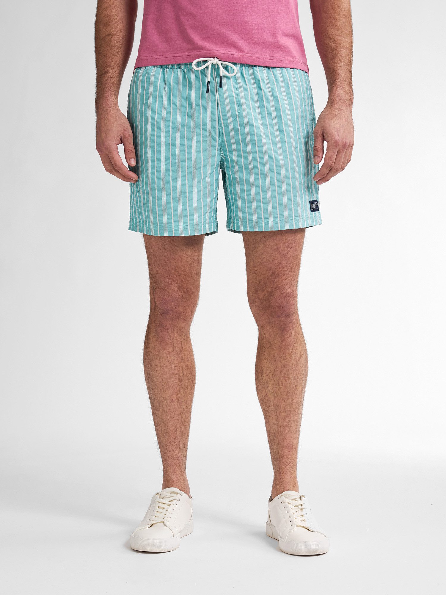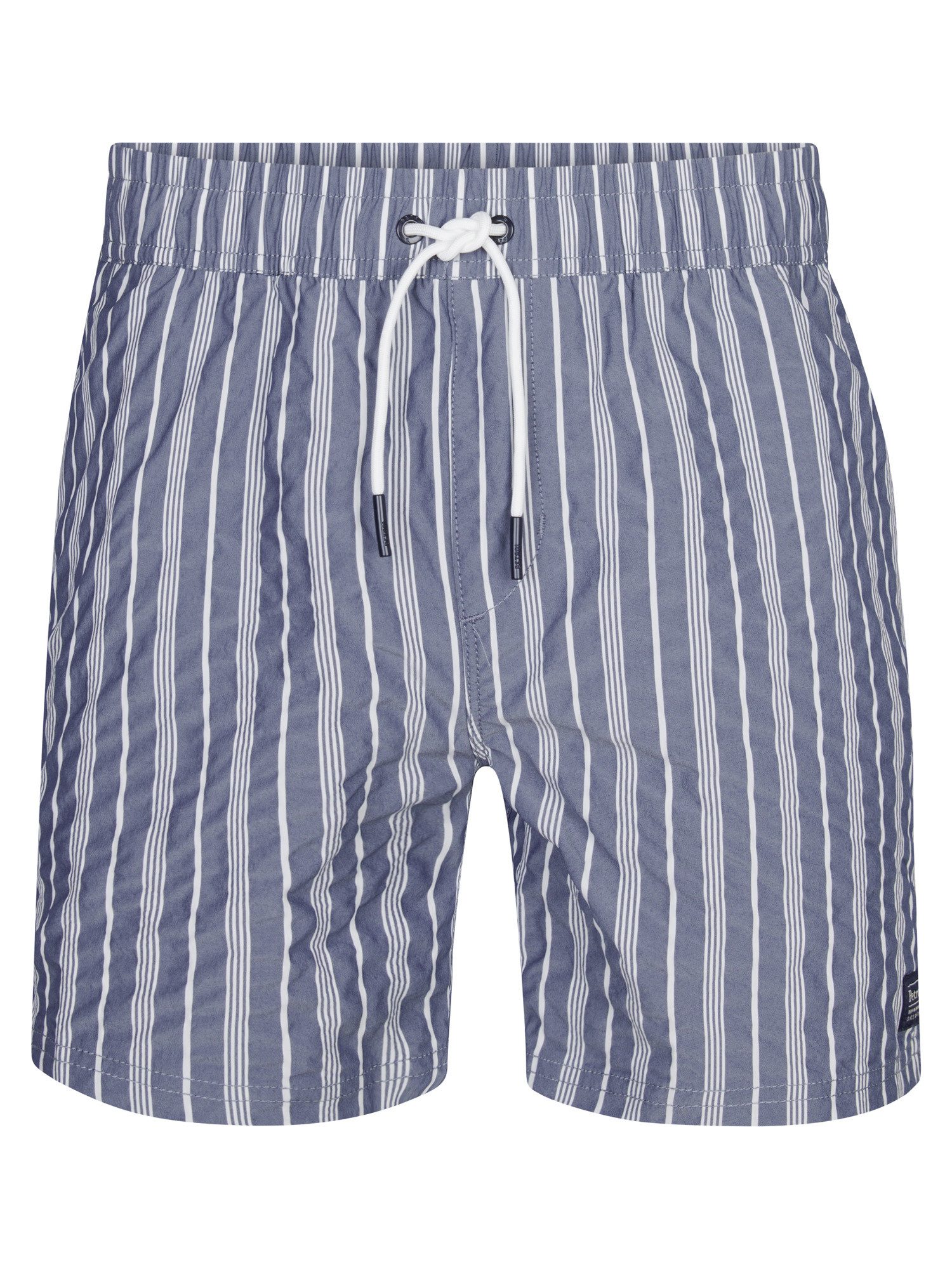 Gestreifte Badehose. Diese Badehose weist ein gesticktes Petrol-Logo und einen Tunnelzugverschluss auf. Hergestellt aus 100 % Polyester. Du kannst dich nicht zwischen zwei Größen entscheiden? Dann wähle die größere Größe.