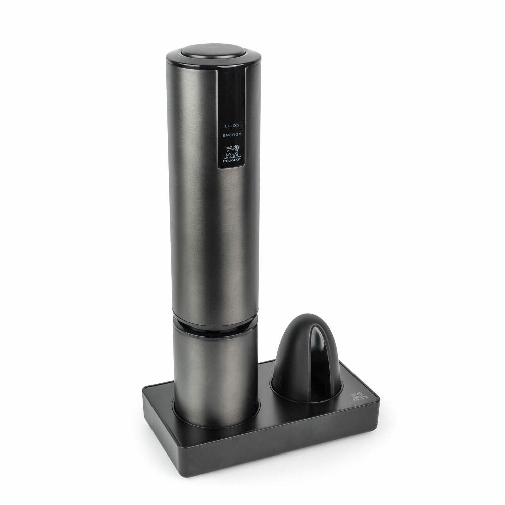 Die volle Genialität von Peugeot kommt in diesem elektrischen Korkenzieher Elis Touch mit Ladestation und Folienschneider zum Vorschein. Er verfügt über eine Lithium-Ionen-Batterie der neuesten Generation, die das Öffnen von 80 Flaschen und eine Schnellladung in nur 2,5 Stunden ermöglicht. Praktisch: Er entkorkt Ihre Weinflaschen mühelos, einfach den Korkenzieher auf den Flaschenhals setzen und schon wird Ihre Flasche automatisch entkorkt. Der Korkenauswurf erfolgt per Knopfdruck. Eleganz und Expertise machen den Elis Touch zu einem Bestseller!