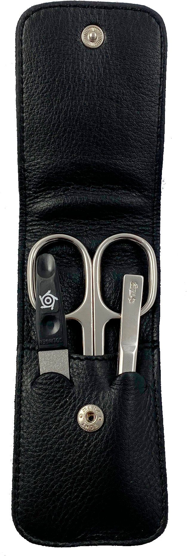 Besondere Merkmale | Etui aus feinstem Leder, drei Instrumente aus Stahl, klein & handlich. |