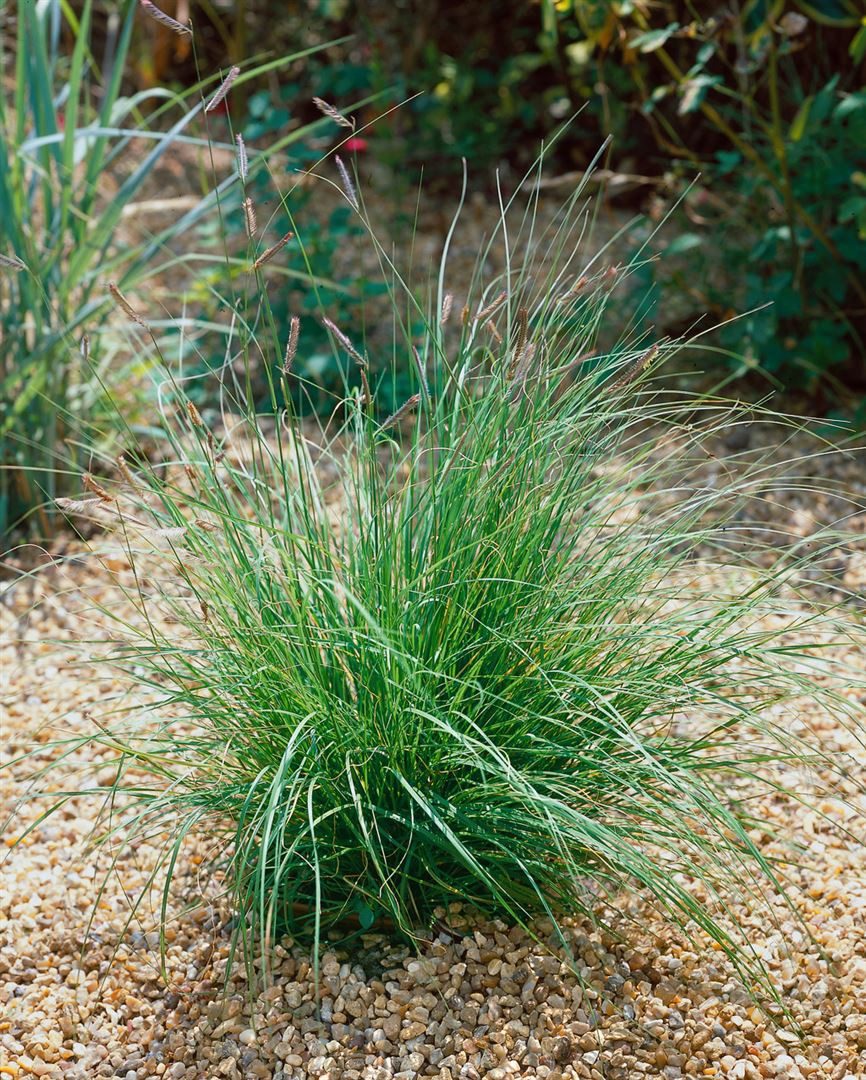 Filigranes Praeriegras mit blaugruenem Laub liefert markante Wimper Aehren im Sommer und sorgt fuer eine dekorative Struktur im Beet.