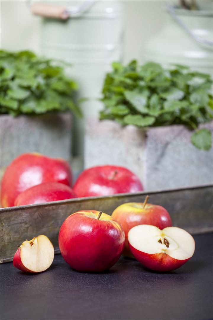 Malus domestica Topaz ist ein aromatischer Tafelapfel saftig knackig und ausgewogen suess saeuerlich sowie schorfresistent