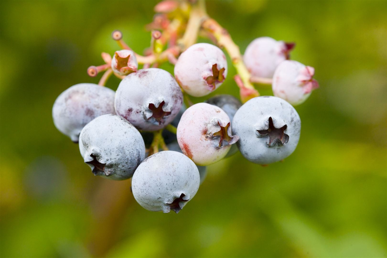Heidelbeere Bonus Vaccinium corymbosum hat sehr grosse suess aromatische Beeren mit hohem Ertrag und Ernte von Juli bis August