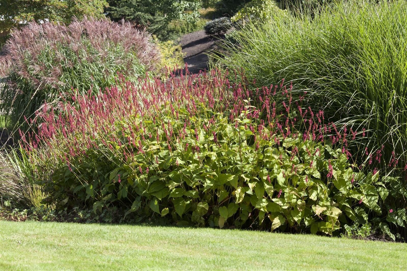 Bistorta amplexicaulis ‘Speciosa’, der Kerzenknöterich bzw. Ampfer?Knöterich, ist eine langlebige Gartenstaude mit großer Wirkung im Ziergarten. Unter dem synonymen botanischen Namen Persicaria amplexicaulis bekannt, überzeugt diese Blütenstaude mit schlanken, kerzenförmigen Blütenähren in kräftigem Rosarot bis Purpur, die von Hochsommer bis in den Herbst hinein erscheinen. Der aufrechte, horstbildende Wuchs erreicht je nach Standort etwa 80 bis 100 cm Höhe, während das dichte, frischgrüne Laub einen attraktiven Teppich bildet und Beete strukturiert. Im Staudenbeet, in der Mixed Border, im Cottage?Garden oder am Teichrand setzt der Zierknöterich farbstarke Akzente; er eignet sich sowohl für Gruppenpflanzungen als auch als Solitär zwischen Gräsern und anderen Spätsommerblühern. Als Kübelpflanze verschönert er Terrasse und Vorgarten, sofern der Wurzelbereich gleichmäßig feucht bleibt. Bevorzugt werden sonnige bis halbschattige Plätze mit frischem, humosem, nährstoffreichem und gut durchlässigem Boden; leichte Lehmböden fördern die Vitalität, während längere Trockenphasen mit zusätzlicher Bewässerung auszugleichen sind. Nach der Blüte können die Triebe zurückgeschnitten werden, was die Vitalität unterstützt und für einen ordentlichen Eindruck sorgt; ein bodennaher Rückschnitt erfolgt im Spätwinter oder zeitigen Frühjahr. Eine jährliche Frühjahrsdüngung mit Kompost oder organischem Langzeitdünger sowie gelegentliches Teilen älterer Horste erhält die Blühfreude. Der robuste Gartenstrauch im Staudenformat ist winterhart, standfest und pflegeleicht, setzt in Rabatten, an Gehölzrändern und am Ufer natürliche, langanhaltende Farbbänder und liefert zudem haltbare Schnittblumen für die Vase.