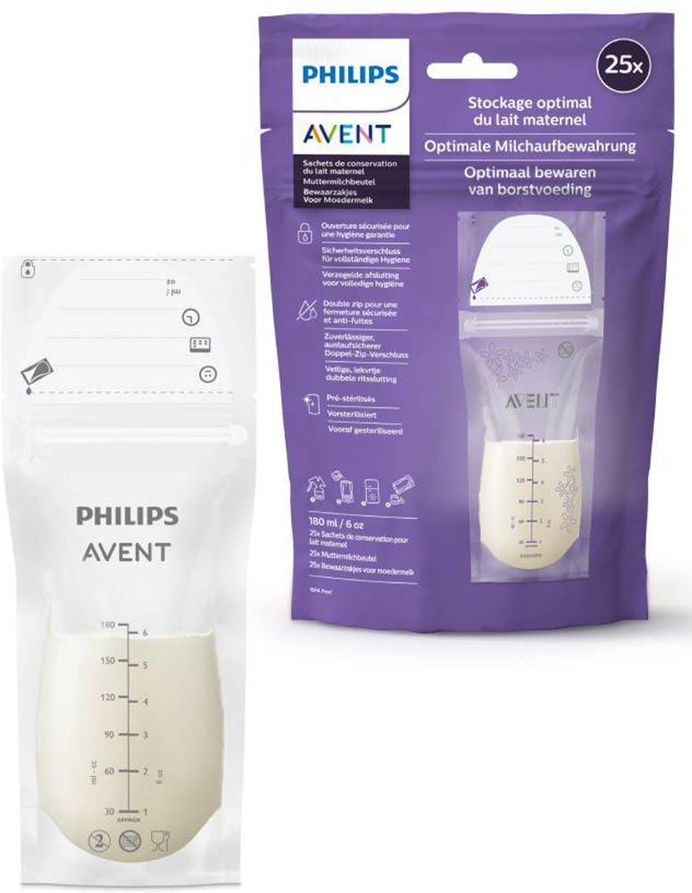 Die Philips Avent Muttermilchbeutel SCF603/25 bieten den ultimativen Schutz für die Aufbewahrung Ihrer wertvollen Muttermilch. Diese Beutel sind vorsterilisiert und sofort einsatzbereit, was eine einfache und sichere Lagerung im Kühl- oder Gefrierschrank ermöglicht. Mit einem Fassungsvermögen von 180 ml sind die Philips Avent Muttermilchbeutel ideal für die Bedürfnisse stillender Mütter. Das robuste Design mit verstärkten Nähten und einer zweilagigen Beutelbeschichtung sorgt dafür, dass die Beutel stabil und sicher aufgestellt werden können, ohne dass sie gestützt werden müssen. Die breite Öffnung erleichtert das Befüllen und Ausgießen der Milch erheblich. Ein zuverlässiger, auslaufsicherer Doppel-Zip-Verschluss sorgt dafür, dass die Muttermilch sicher und hygienisch aufbewahrt wird. Der vorsterilisierte Beutel verfügt über einen Sicherheitsverschluss, der zeigt, dass der Beutel vor dem ersten Gebrauch unbenutzt ist und somit vollständige Hygiene gewährleistet. Dank des flachen Designs lassen sich die Beutel platzsparend im Kühl- oder Gefrierschrank aufbewahren. Dies macht die Handhabung besonders praktisch und effizient. Das strapazierfähige Material dieser Beutel bietet zusätzlichen Schutz, was sie zur idealen Wahl für die Aufbewahrung von Muttermilch macht.