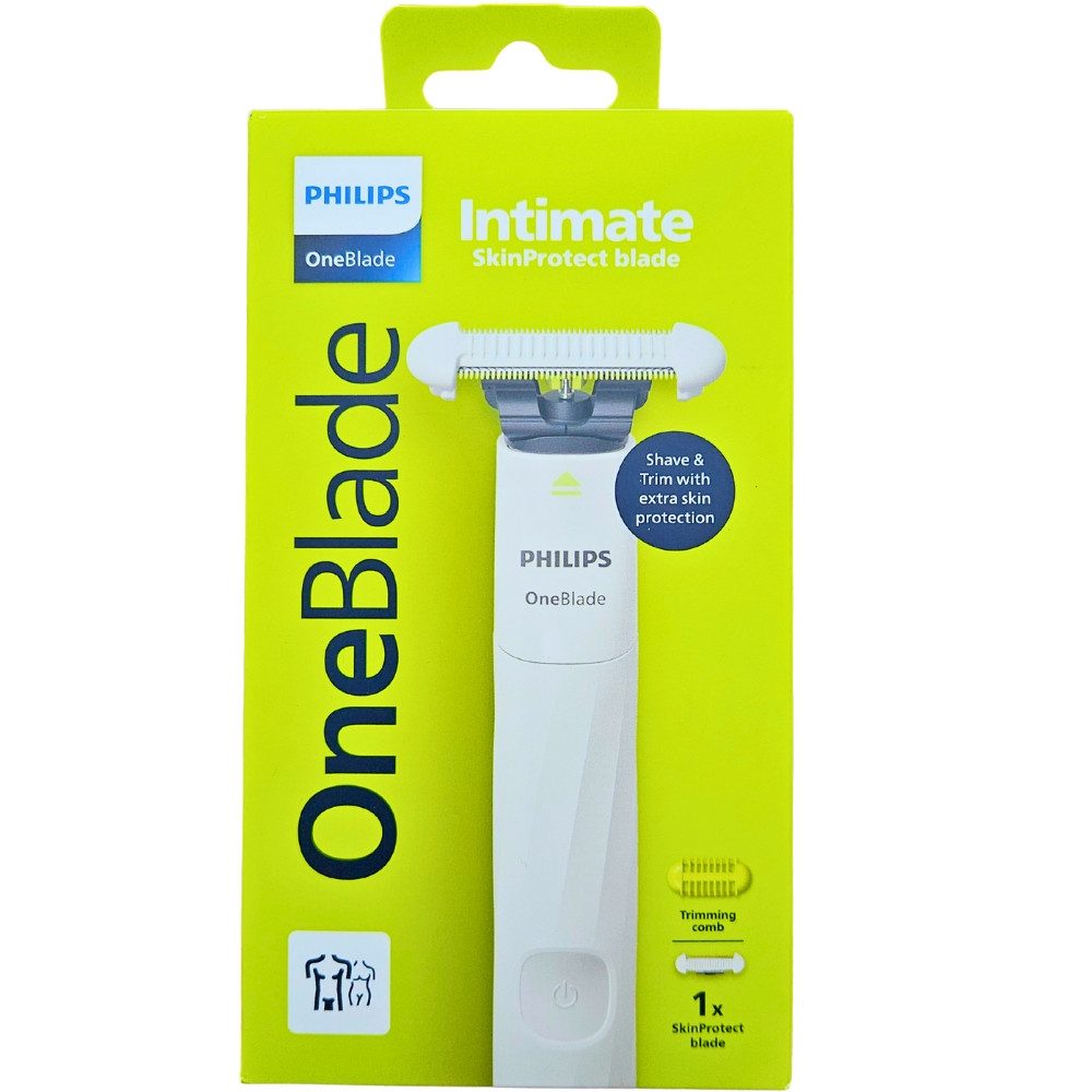 Lieferumfang | 1x OneBlade Handstück (Modell: QP1924/20) 1x SkinProtect-Klinge 1x 3-mm-Trimmeraufsatz 1x USB-A-Ladekabel |