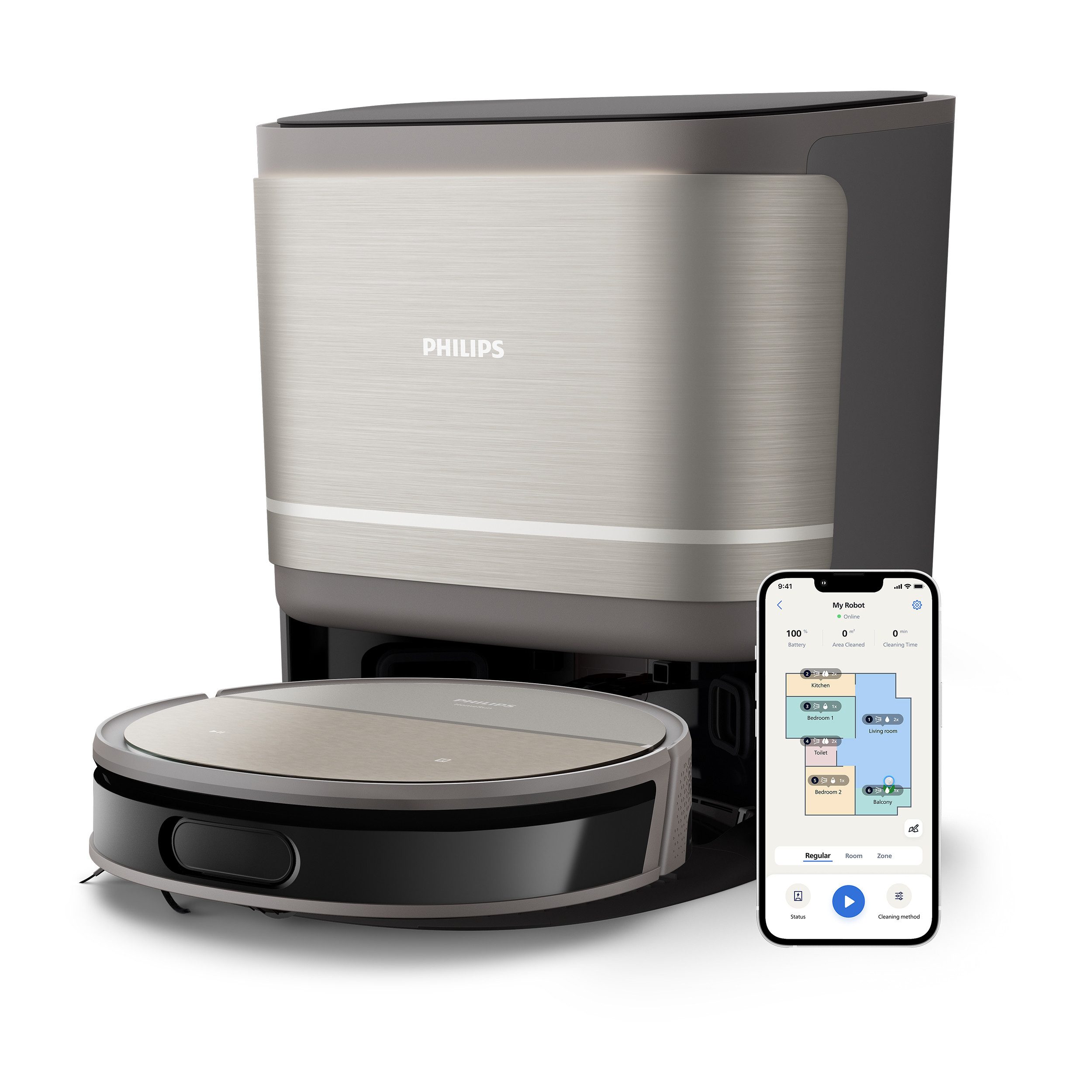 Philips Saugroboter mit Wischfunktion XU9100/10, mit PowerCyclone Aqua Technologie, mit Beutel, 280 Min. Akkulaufzeit, D-ToF-Sensoren, Wischtuch-Hebesystem