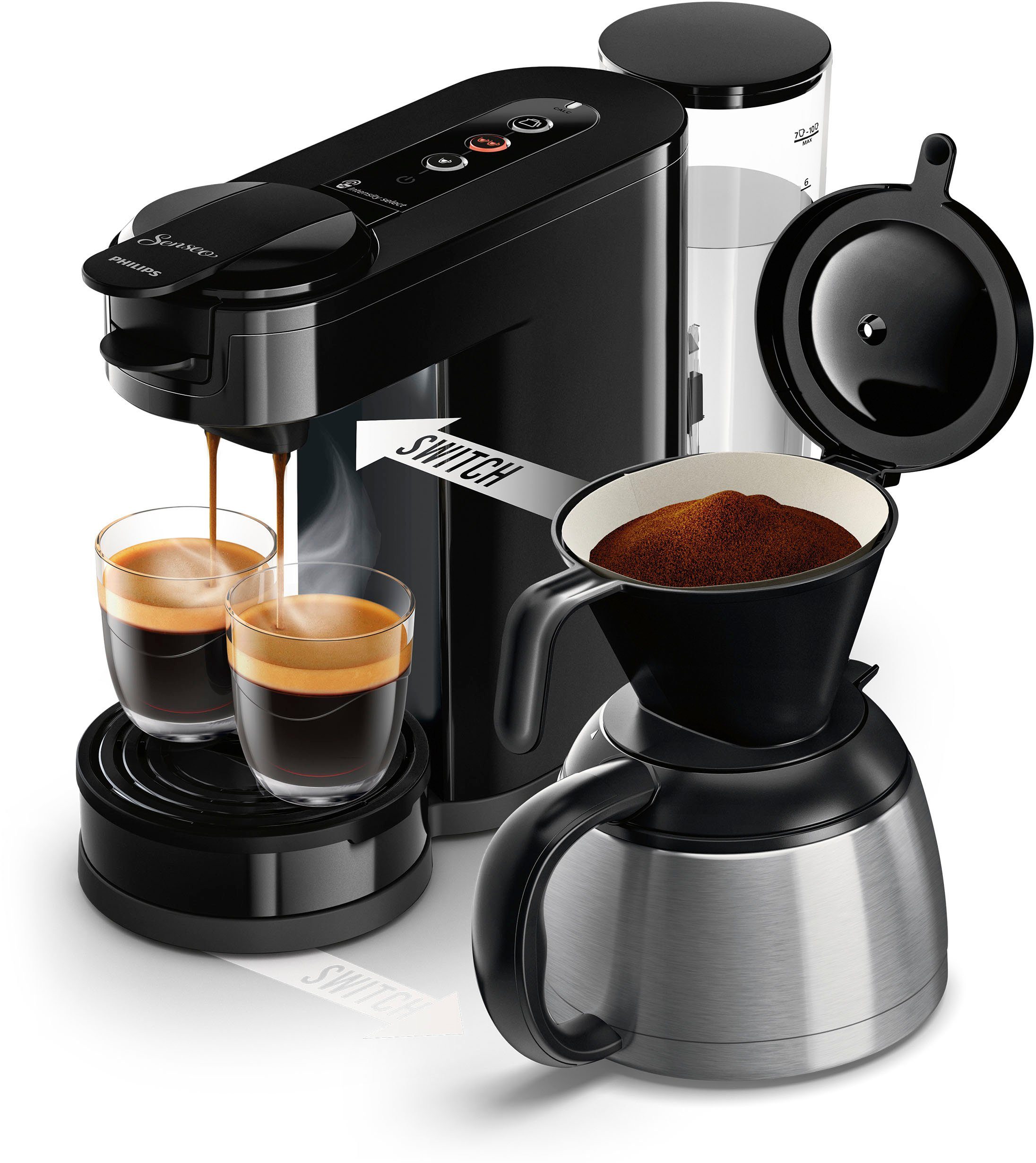 Впередe Vorteile | Die einzige 2-in-1-Kaffeemaschine: Die Senseo Kaffeemaschine – unser vielseitiger Klassiker. Wählen Sie ganz einfach zwischen Pad-Kaffee und einer Kanne Filterkaffee und genießen Sie Ihren Moment mit köstlichem Kaffee. Material Gehäuse aus 26% recyceltem Plastik Thermoskanne aus Edelstahl (Die Thermo-Kanne aus Edelstahl bewahrt die Temperatur und das Aroma über Stunden.). |