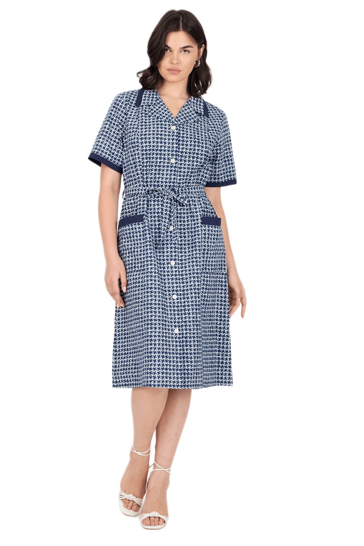 Kurzärmeliges Damen-Arbeitskleid aus 100% Baumwolle mit Kragen und Gürtel Dieses praktische und gleichzeitig stilvolle Arbeitskleid aus hochwertigem, gewebtem 100% Baumwollstoff bietet durch den klassischen Kragen und die kurzen Ärmel höchsten Tragekomfort. Der Gürtel betont die Taille und sorgt für eine feminine Silhouette. Funktionale Details – Komplett durchgehende Knopfleiste und dekorative Akzente Das Kleid ist vorne komplett mit Knöpfen versehen und verfügt über praktische Taschen. Die Ränder von Kragen, Ärmeln und Taschen sind mit stilvollen Accessoires verziert, die dem Kleid eine besondere Note verleihen – ideal als Haus- oder Berufskleidung für Frauen. Pflegeleicht und langlebig – Waschbar bei 40 Grad Das robuste Material ist bei 40 Grad maschinenwaschbar und behält dabei seine Form und Farbe. Ein funktionales und zugleich elegantes Kleid für Frauen, die Komfort und Stil im Alltag verbinden möchten.