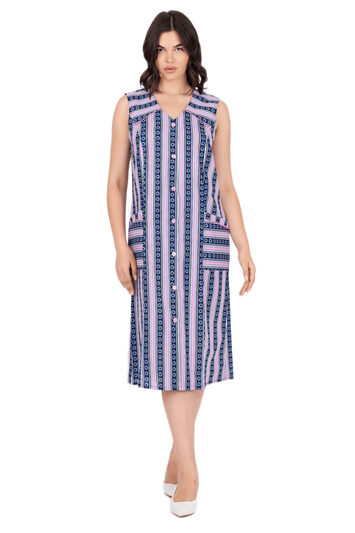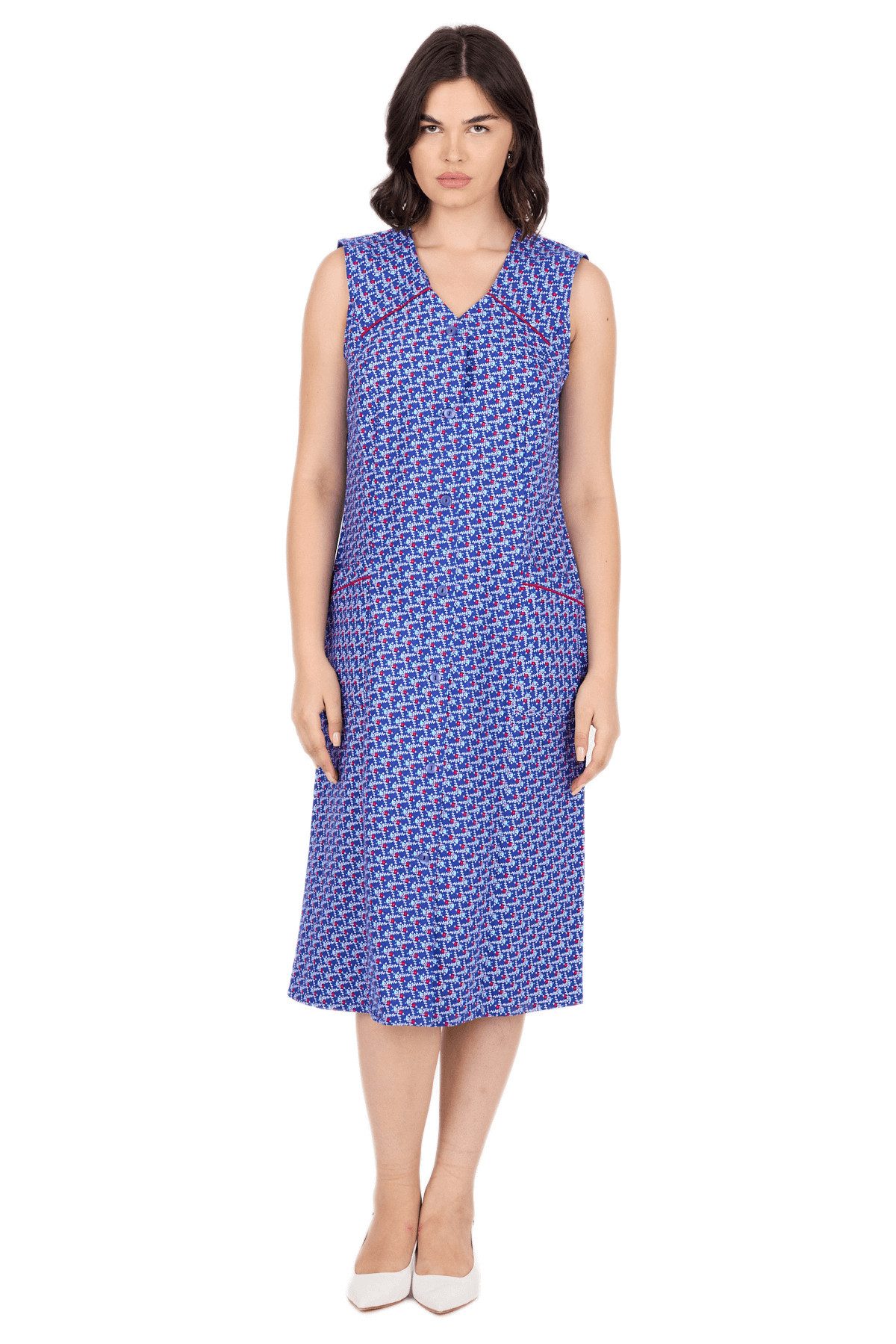 Damen-Arbeitskleid aus 100% Baumwolle mit kontrastierenden Paspeln Dieses praktische und stilvolle Arbeitskleid besteht aus hochwertigem, gewebtem 100% Baumwollstoff und überzeugt durch seine angenehme Haptik und Atmungsaktivität. Die kontrastreichen Paspeln an Schultern und Taschen verleihen dem Kleid einen modernen und eleganten Look. Komplett durchgehende Knopfleiste und taillierter Rücken Das Kleid ist vorne komplett mit Knöpfen versehen, die das An- und Ausziehen erleichtern. Der kurze Rückenbund sorgt für eine optimale Passform und betont die feminine Silhouette – ideal für den Alltag oder als Hauskleidung. Pflegeleicht und langlebig – Waschbar bei 40 Grad Das Kleid ist bei 40 Grad maschinenwaschbar und behält dabei seine Form und Farbe auch nach mehrmaligem Waschen. Eine perfekte Kombination aus Komfort, Funktionalität und Stil für modebewusste Frauen.