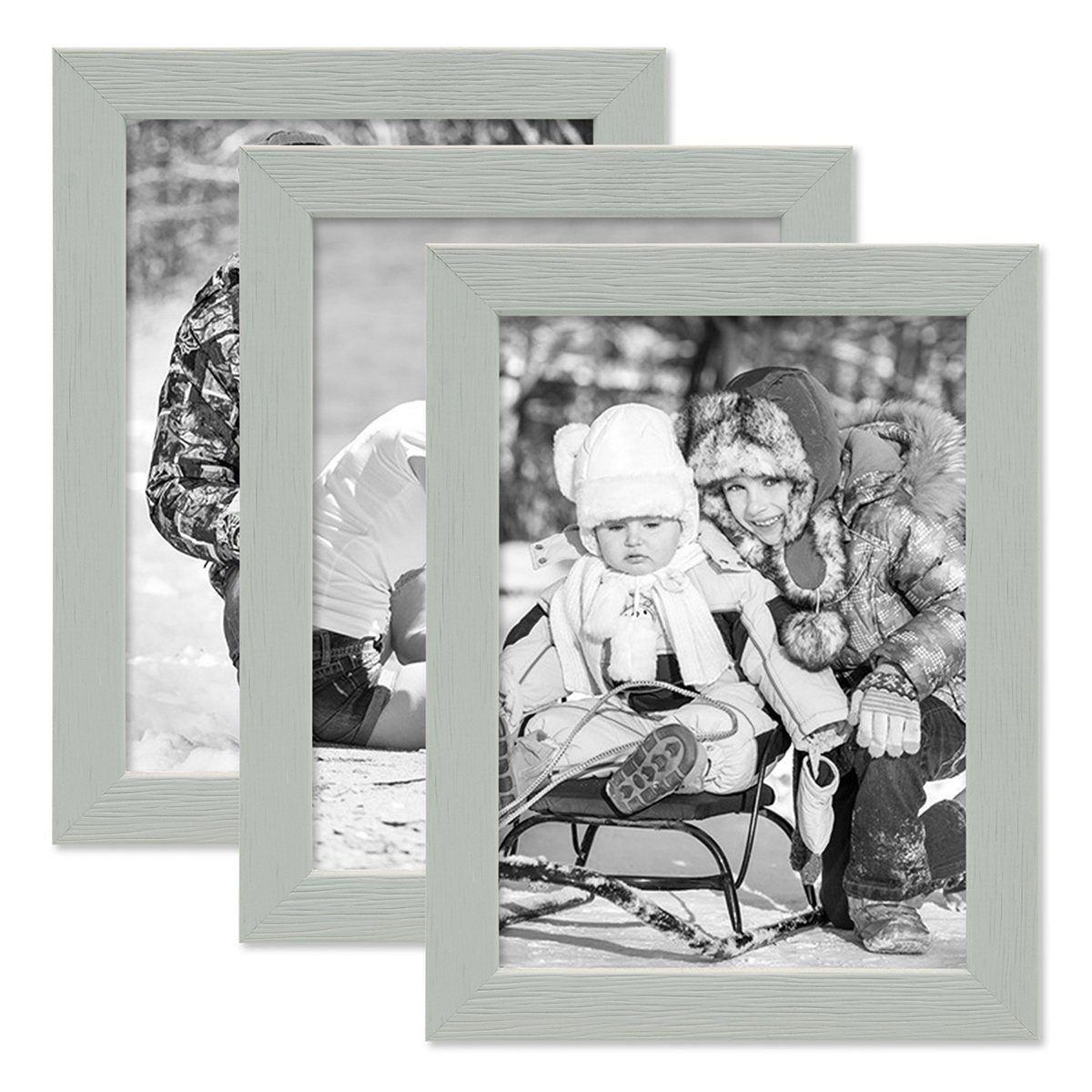Drei Massivholz-Bilderrahmen aus Kiefer in zartem Grau - nehmen sich zurück und verleihen jedem Raum einen Hauch Eleganz. Die Bilderrahmen lassen sich hervorragend mit anderen Farben und Größen der Serie zu einer farbenfrohen Fotocollage oder Bildergalerie kombinieren. Frische Farben wie Hellblau, Mint-Grün, Violett oder Rosa harmonieren mit warmem Rot, Orange und Gelb genauso gut wie mit schlichtem Weiß, Hellgrau oder sattem Dunkelblau und Dunkelgrün. So lässt sich mit farbigen Bilderrahmen eine Bilderwand mit fröhlich-individuellem Charakter ganz einfach selbst gestalten. Die Bilderrahmen eignen sich aufgrund ihrer freundlichen und positiv stimmenden Optik perfekt als Dekoration fürs Kinderzimmer oder Babyzimmer. Hier setzen sie jedes Bild harmonisch in Szene – sei es Babyfoto, Kinderzeichnung oder Aquarellmalerei. Dabei passen die Bilderrahmen sowohl in jedes schlicht als auch verspielt eingerichtete Wohnambiente. (Motive und Dekoration sind nicht im Lieferumfang enthalten)